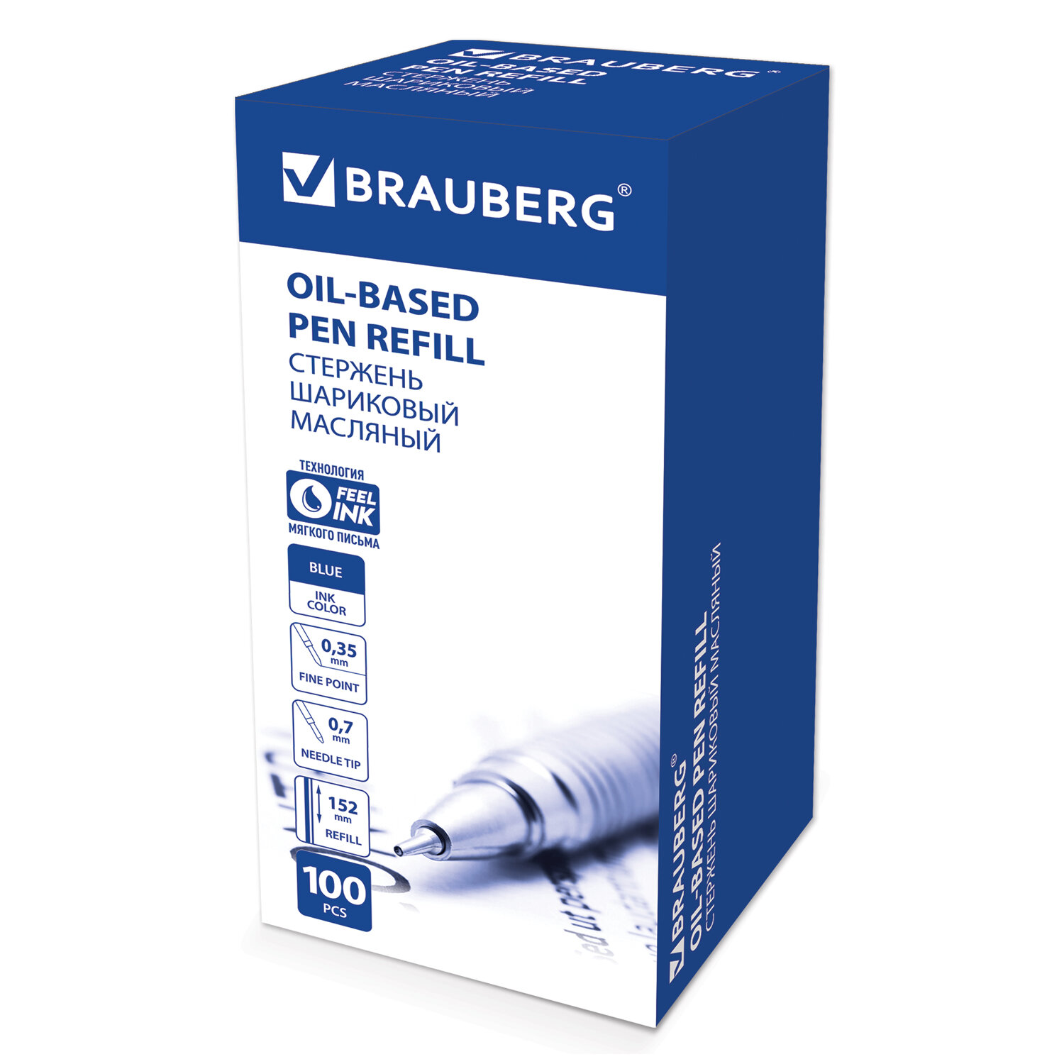 - Стержень шариковый масляный BRAUBERG, 152 мм, СИНИЙ, узел 0,7 мм, линия письма 0,35 мм, 170236