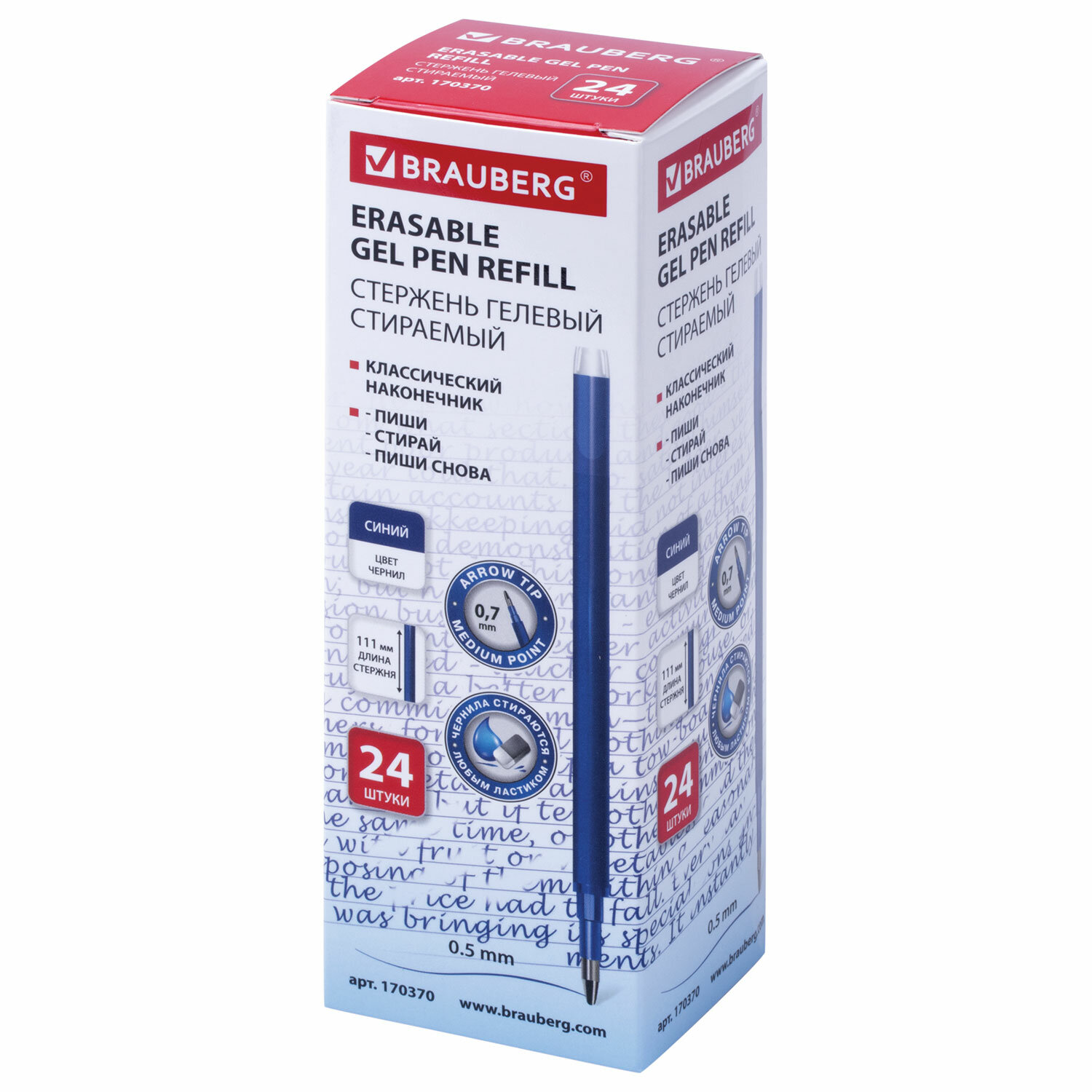 - Стержень стираемый гелевый BRAUBERG 111 мм, СИНИЙ, евронаконечник, узел 0,7 мм, линия письма 0,5 мм, 170370