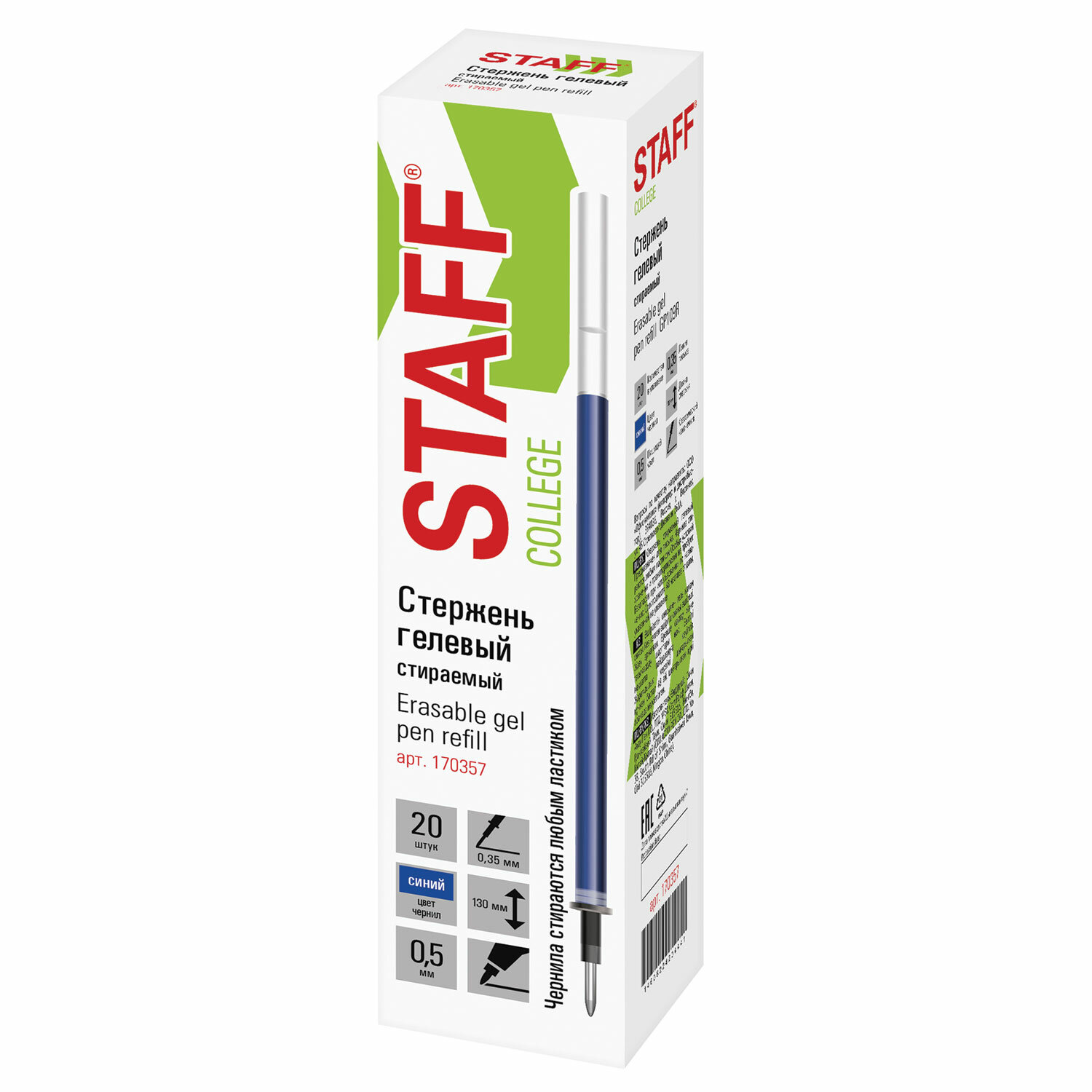 - Стержень стираемый гелевый STAFF "College GP-109R" 130 мм, СИНИЙ, узел 0,5 мм, линия письма 0,35 мм, 170357