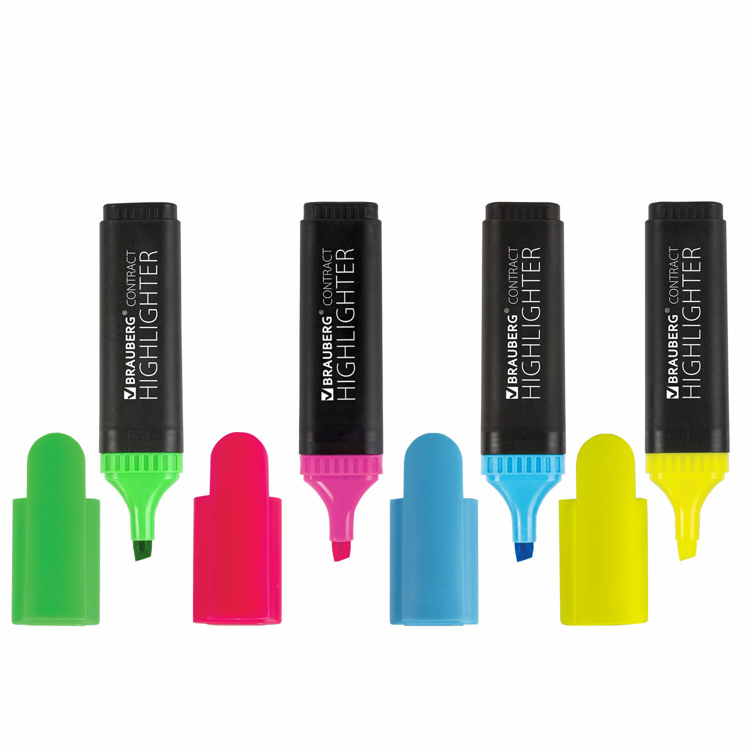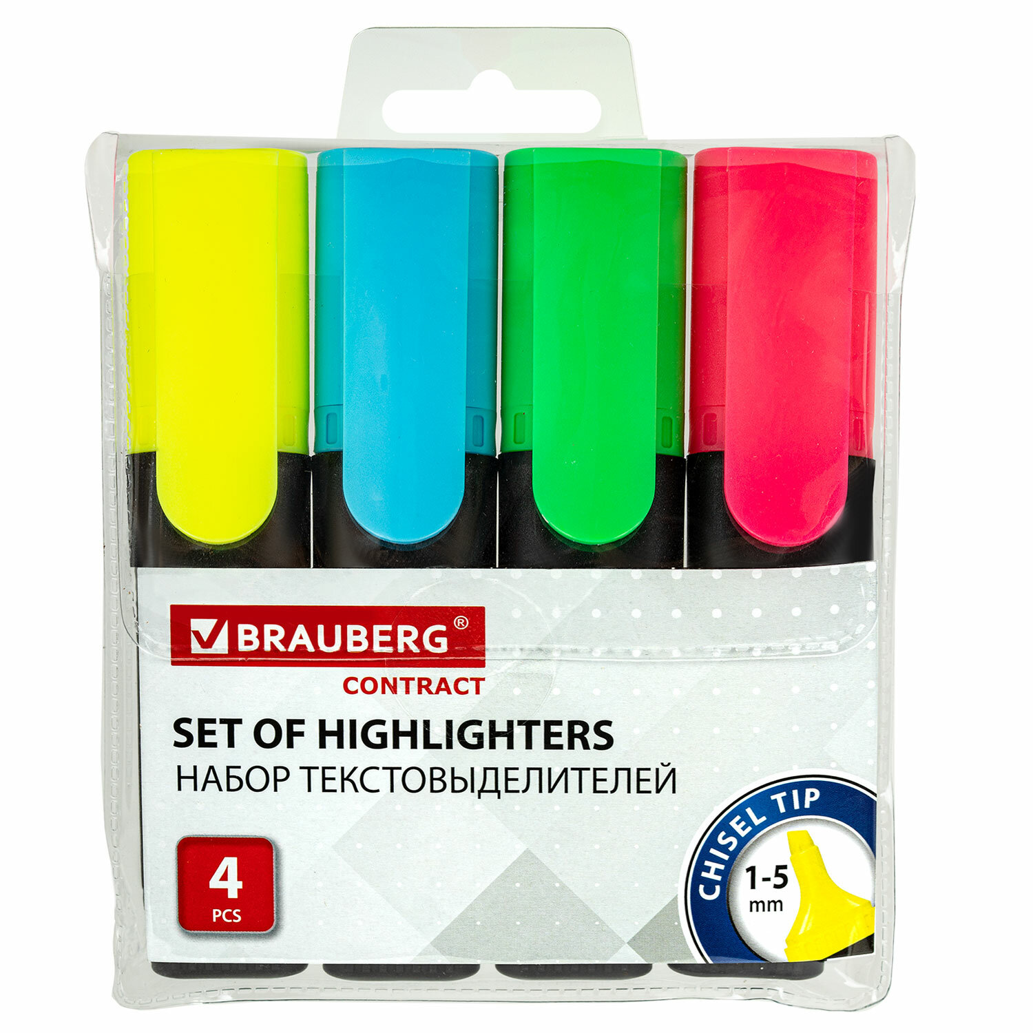 - Набор текстовыделителей BRAUBERG 4 шт., АССОРТИ, "Contract", линия 1-5 мм, 150394