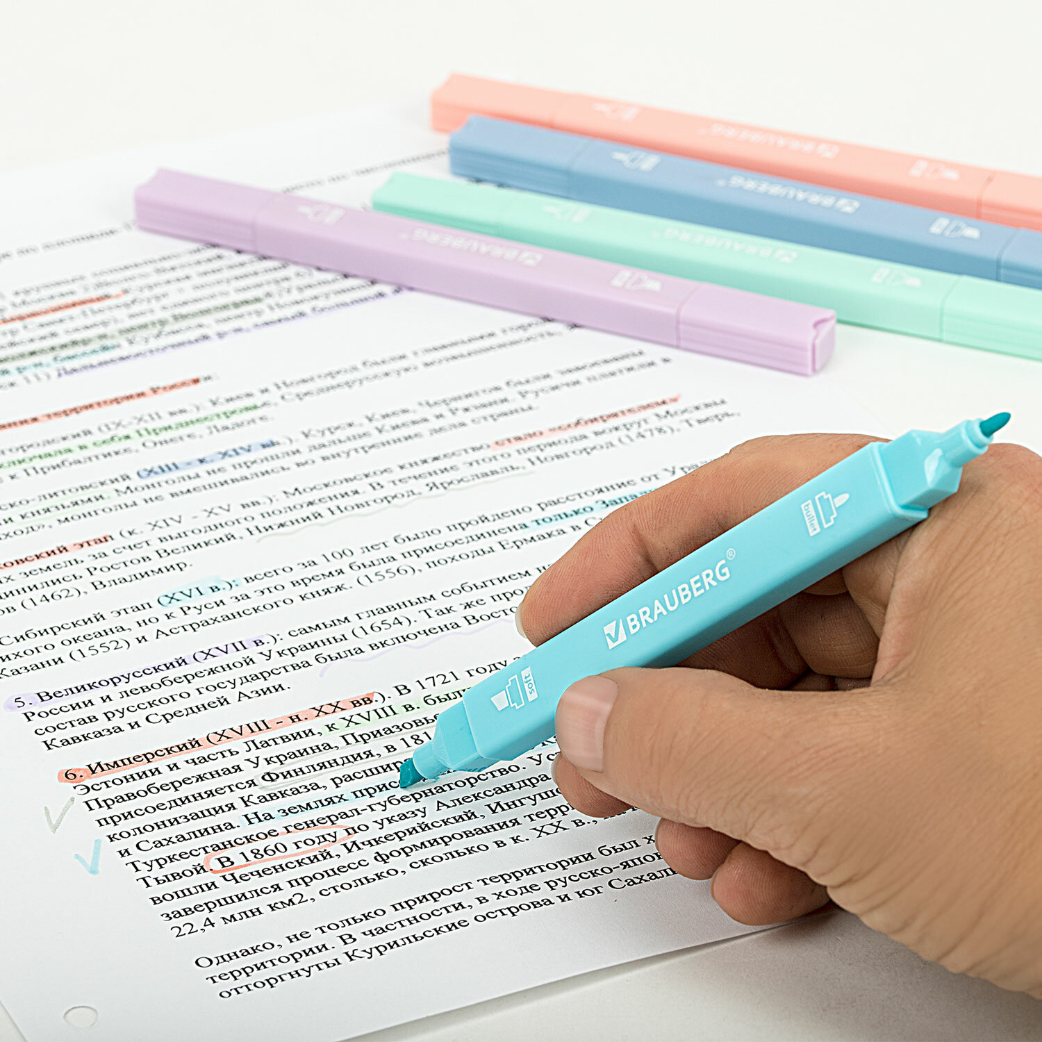 - Набор текстовыделителей двусторонних 6 ПАСТЕЛЬНЫХ ЦВЕТОВ, BRAUBERG "Macaroon", линия 1-5 мм, 152513