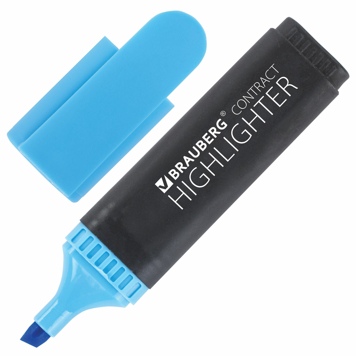- Текстовыделитель BRAUBERG "Contract", ГОЛУБОЙ, линия 1-5 мм, 150391