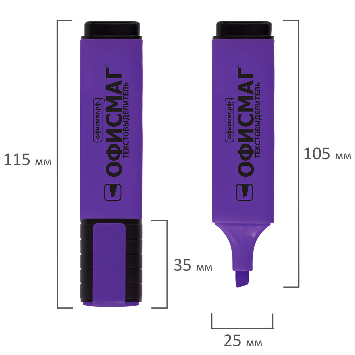 - Текстовыделитель ОФИСМАГ, ФИОЛЕТОВЫЙ, линия 1-5 мм, 151207