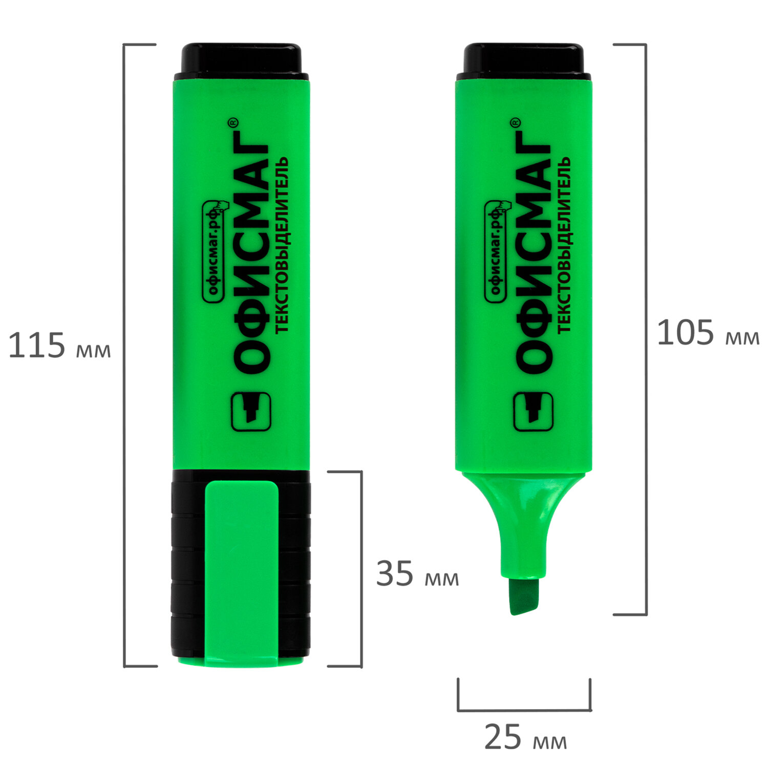 - Текстовыделитель ОФИСМАГ, ЗЕЛЕНЫЙ, линия 1-5 мм, 151204