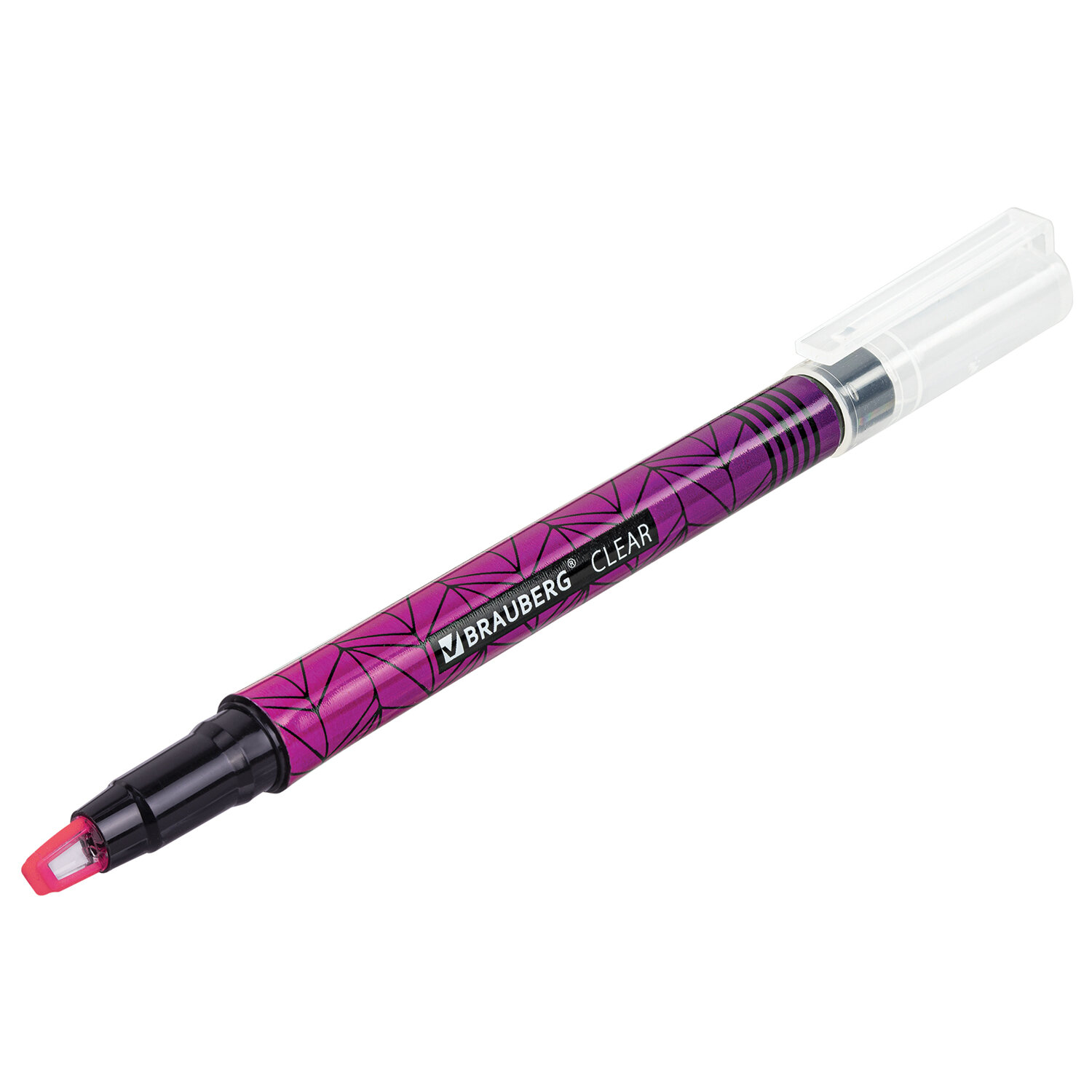 - Текстовыделитель с прозрачным наконечником BRAUBERG "Clear", РОЗОВЫЙ, линия 1-5 мм, 152425