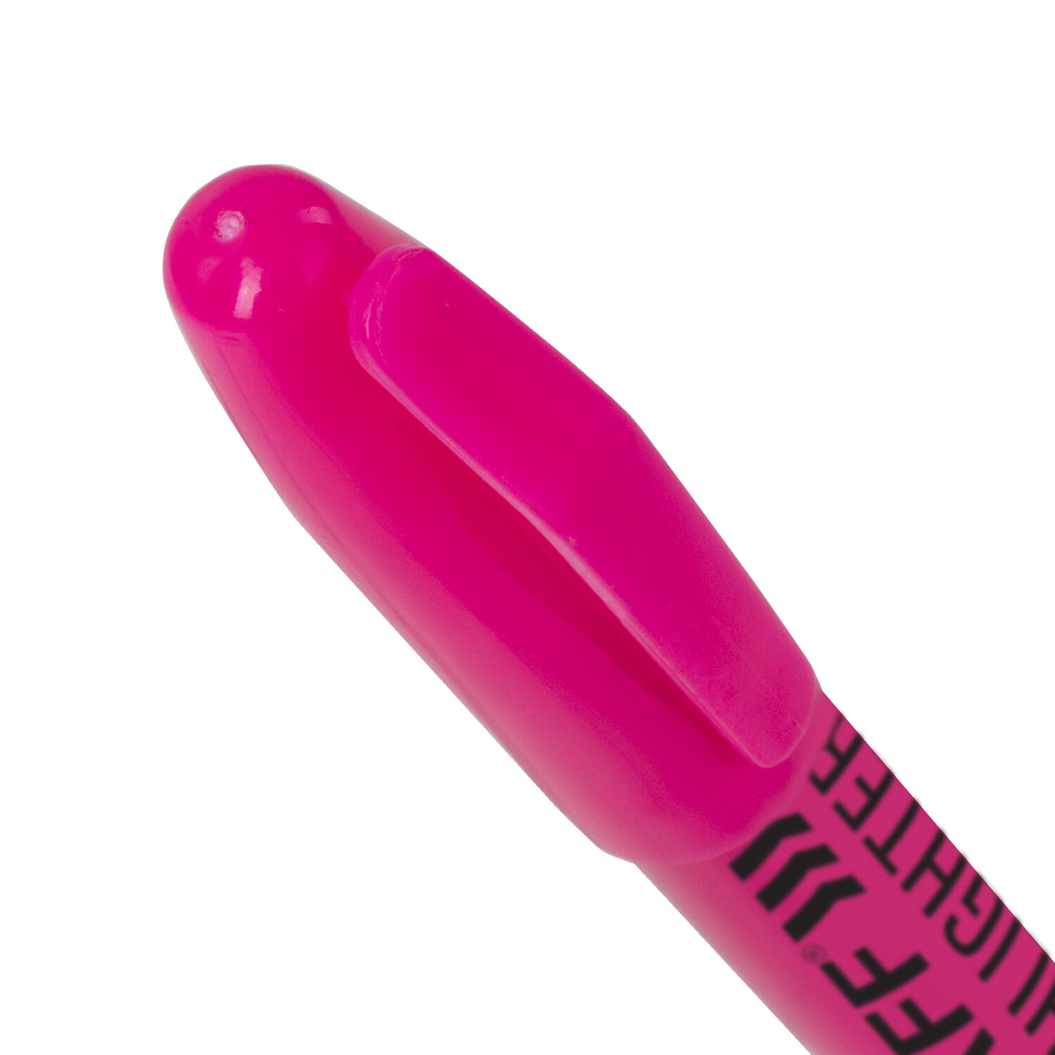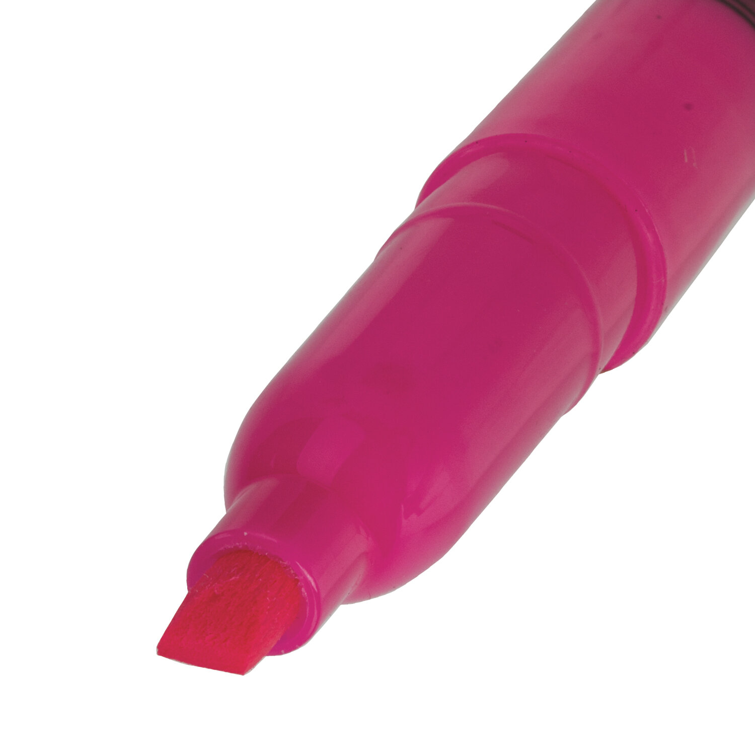Текстовыделитель розового цвета обладает круглой формой корпуса диаметром 12 мм. Корпус тектовыделителя оснащен удобной зоной захвата. Скошенный наконечник имеет толщину линии письма от 1 до 3 мм, что обеспечивает удобство при работе с текстом, напечатанным мелким шрифтом, или таблицами. Текстовыделитель обладает экономным расходом чернил. Светоустойчивые чернила на водной основе не выцветают даже на открытом солнце и не размазываются в процессе использования. Изделие не перезаправляется. Корпус с колпачком соответствует цвету чернил.
