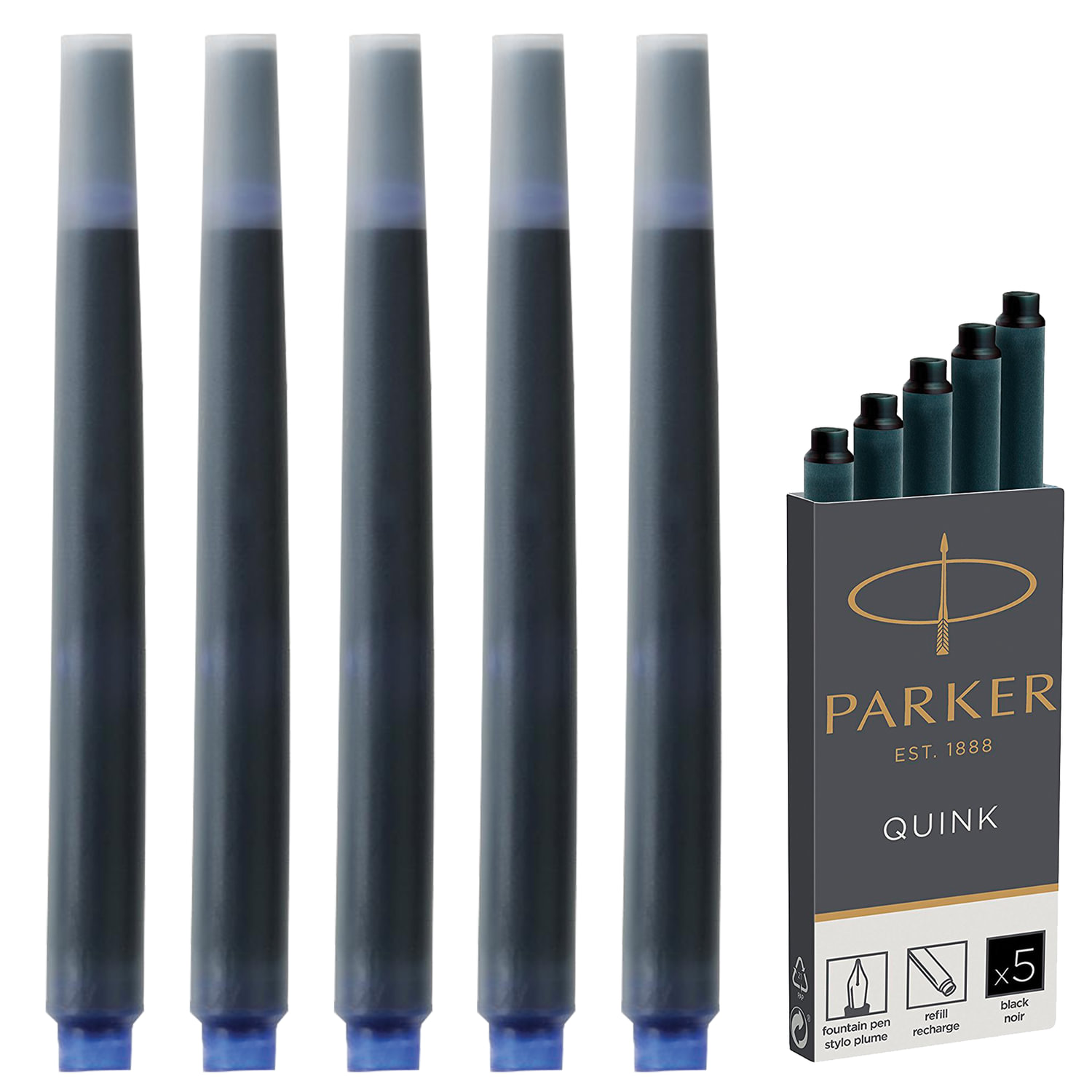 - Картриджи чернильные PARKER "Cartridge Quink", КОМПЛЕКТ 5 штук, черные, 1950382