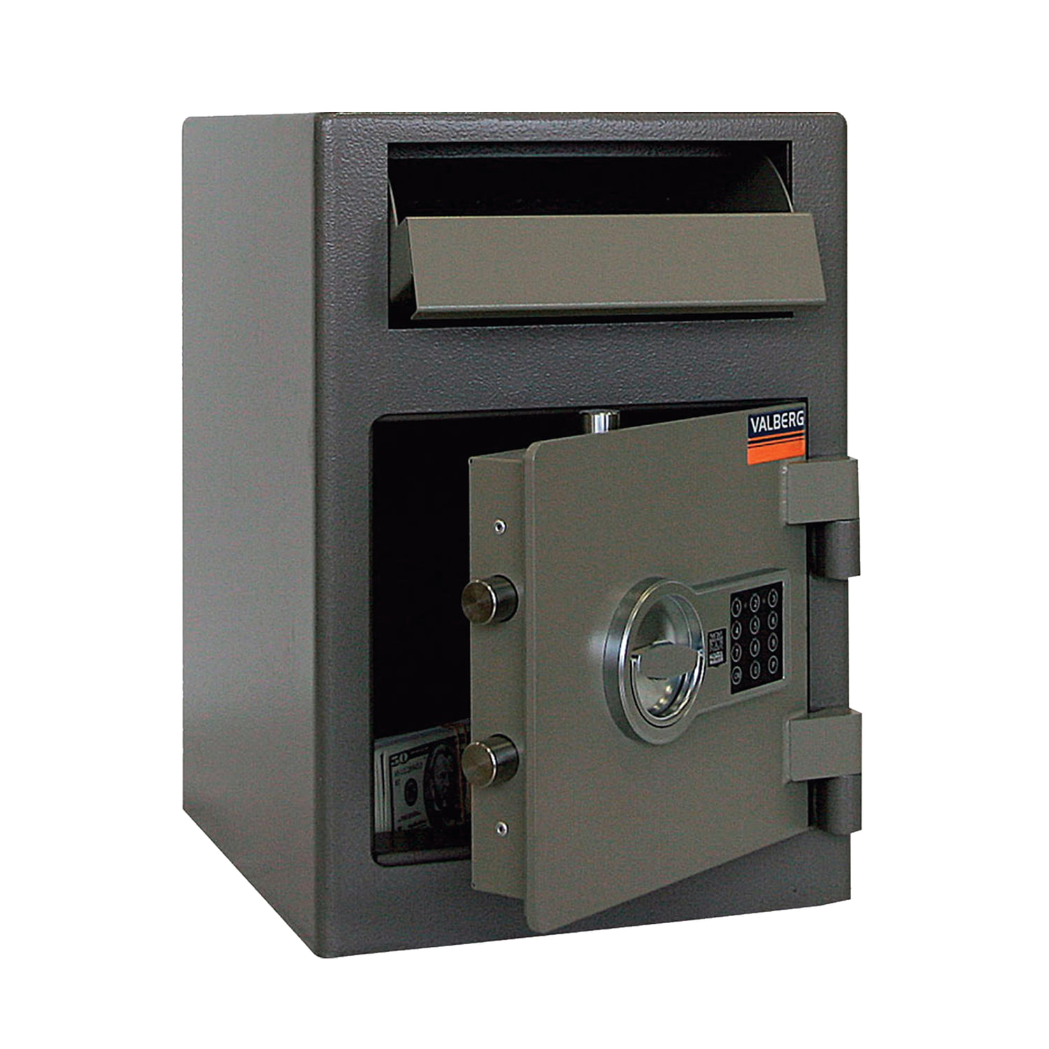 Депозитные сейфы для хранения наличных денег в магазинах, пунктах обмена, кафе и ресторанах, торговых точках, автозаправках, везде, где необходимо ограничить доступ к наличности, как от злоумышленников, так и от обслуживающего персонала. Выручка или документы закладываются в сейф через лоток, а открыть сейф и извлечь содержимое может только администратор (инкассатор). Конструкция сейфа не позволяет изъять содержимое через лоток (установлено антифишинговое устройство), а дверь защищена надежным замком, таким образом, депозитный сейф практически исключает хищения. Также предусмотрена возможность крепления к полу анкерным болтом. Это исключает хищения ценностей вместе с сейфом. Сейф депозитный VALBERG "ASD-19 EL", 489х342х381 мм, 38 кг, электронный замок, крепление к полу