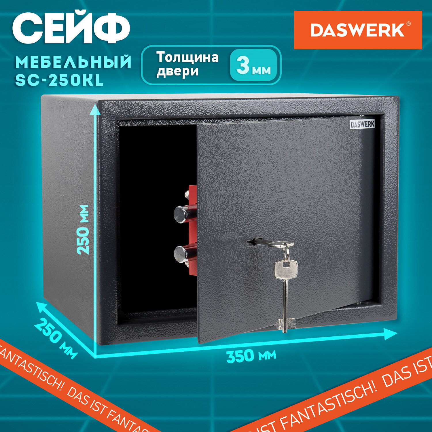 - Сейф мебельный DASWERK SC-250KL (250х350х250 мм), ключевой замок, графит, 291342
