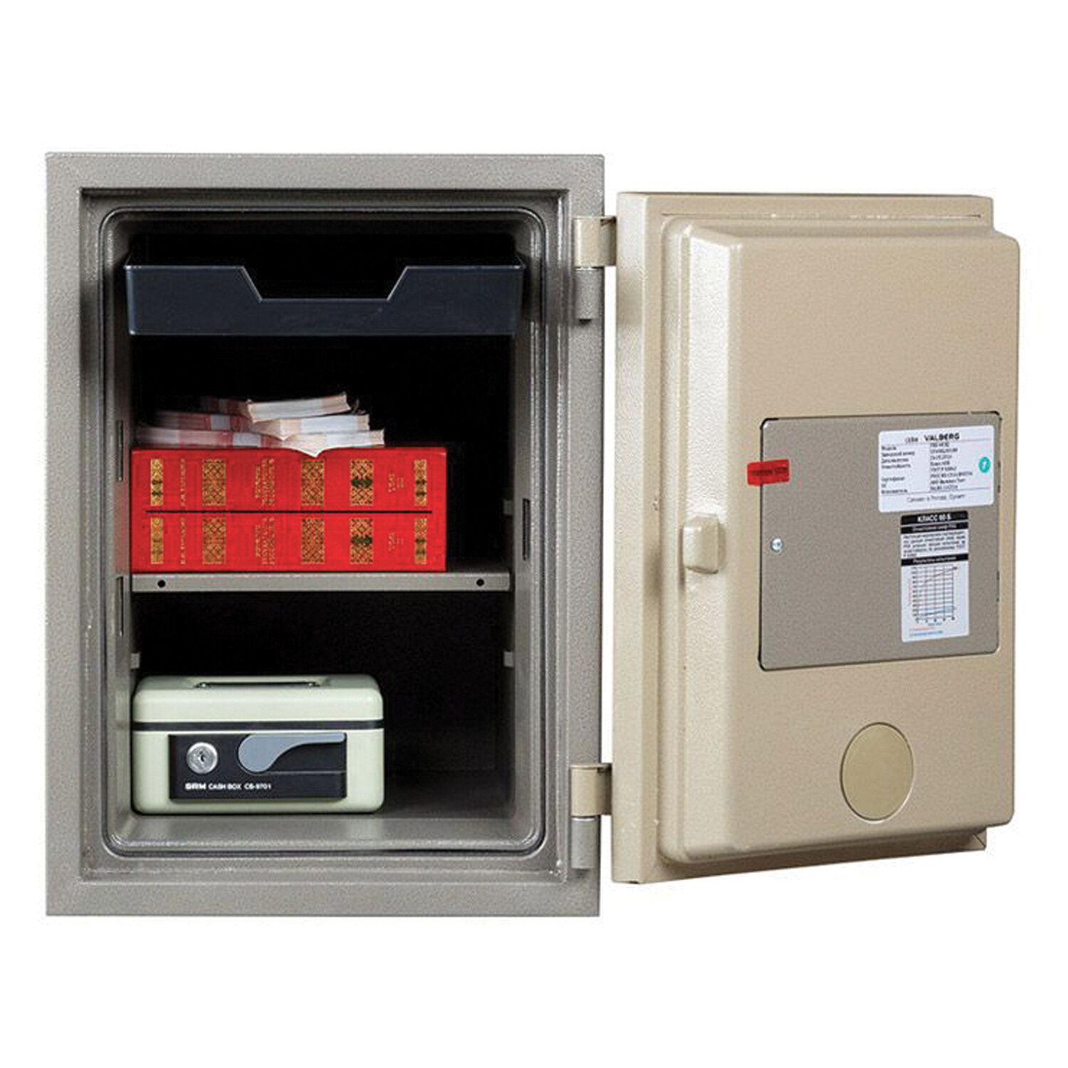 Внутри сейфа – лоток, съемная полка.