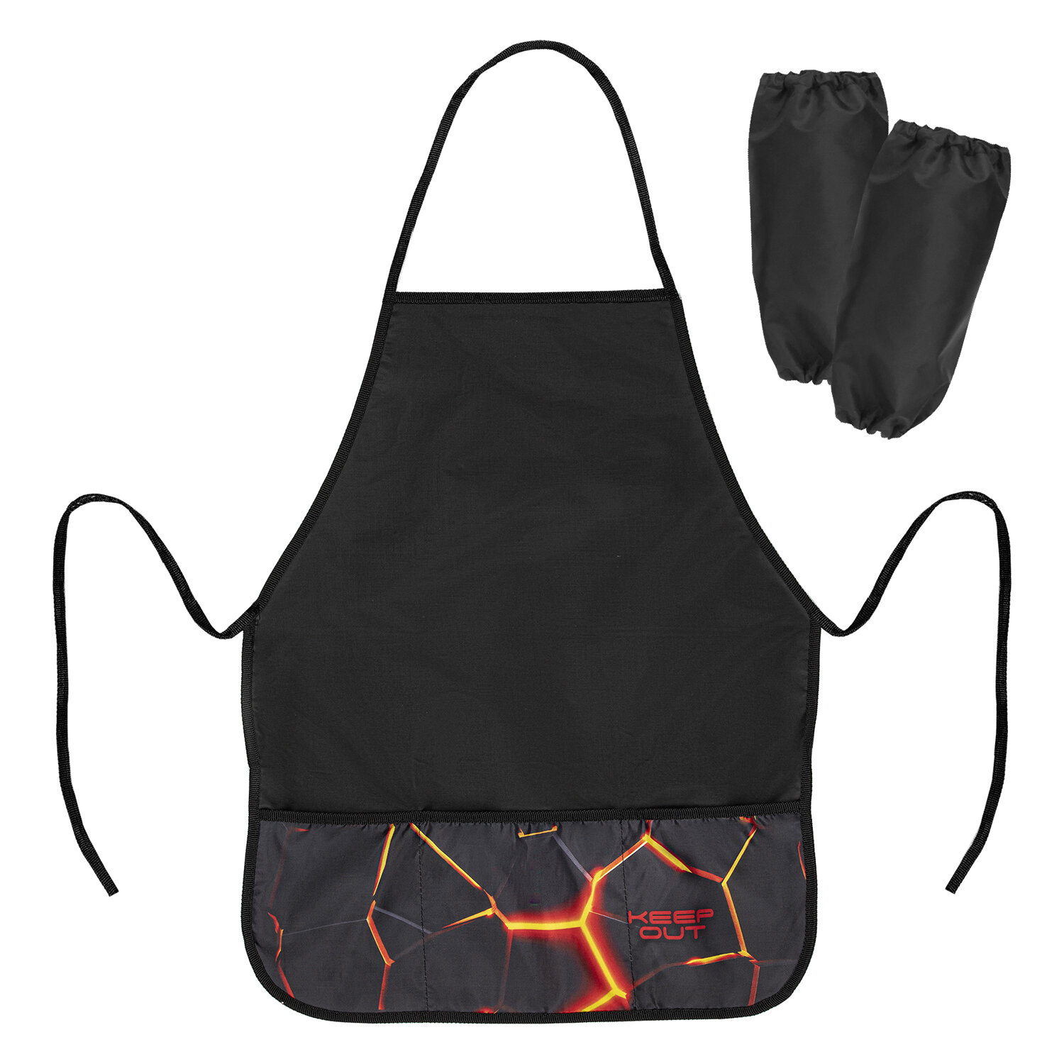 Ассортимент школьного текстиля BRAUBERG - это высокое качество и проработанные до мелочей модели с современным дизайном и широким функционалом. На протяжении 15 лет наши специалисты сосредоточены на разработке, производстве и совершенствовании текстильных товаров для детей и взрослых. Именно поэтому BRAUBERG выбирают дети и родители по всей стране. Накидка фартук с нарукавниками для труда BRAUBERG, 3 кармана, 46x54 см, "Keep out", 271050