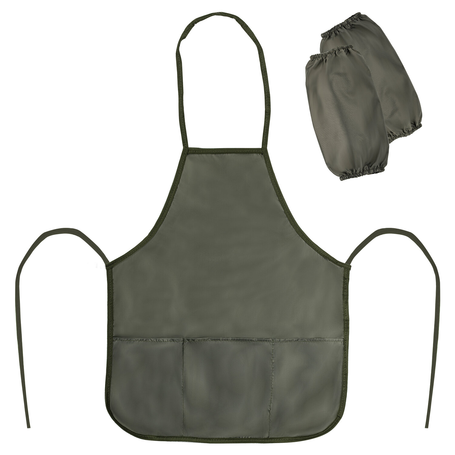 - Накидка фартук с нарукавниками для труда ПИФАГОР, 3 кармана, стандартный размер, 44x55 см, хаки, 271095
