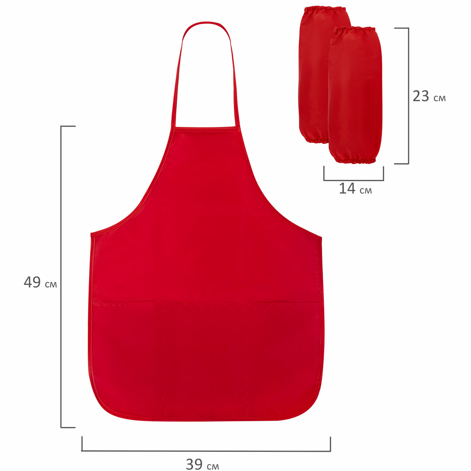 - Накидка фартук с нарукавниками для труда ПИФАГОР, 3 кармана, уменьшенный размер, 39х49 см, красный, 270919