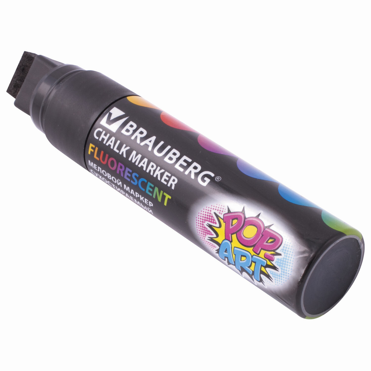 Маркер меловой "POP-ART" ЧЕРНЫЙ, 15 мм, стираемый, для гладких поверхностей, BRAUBERG, 151544