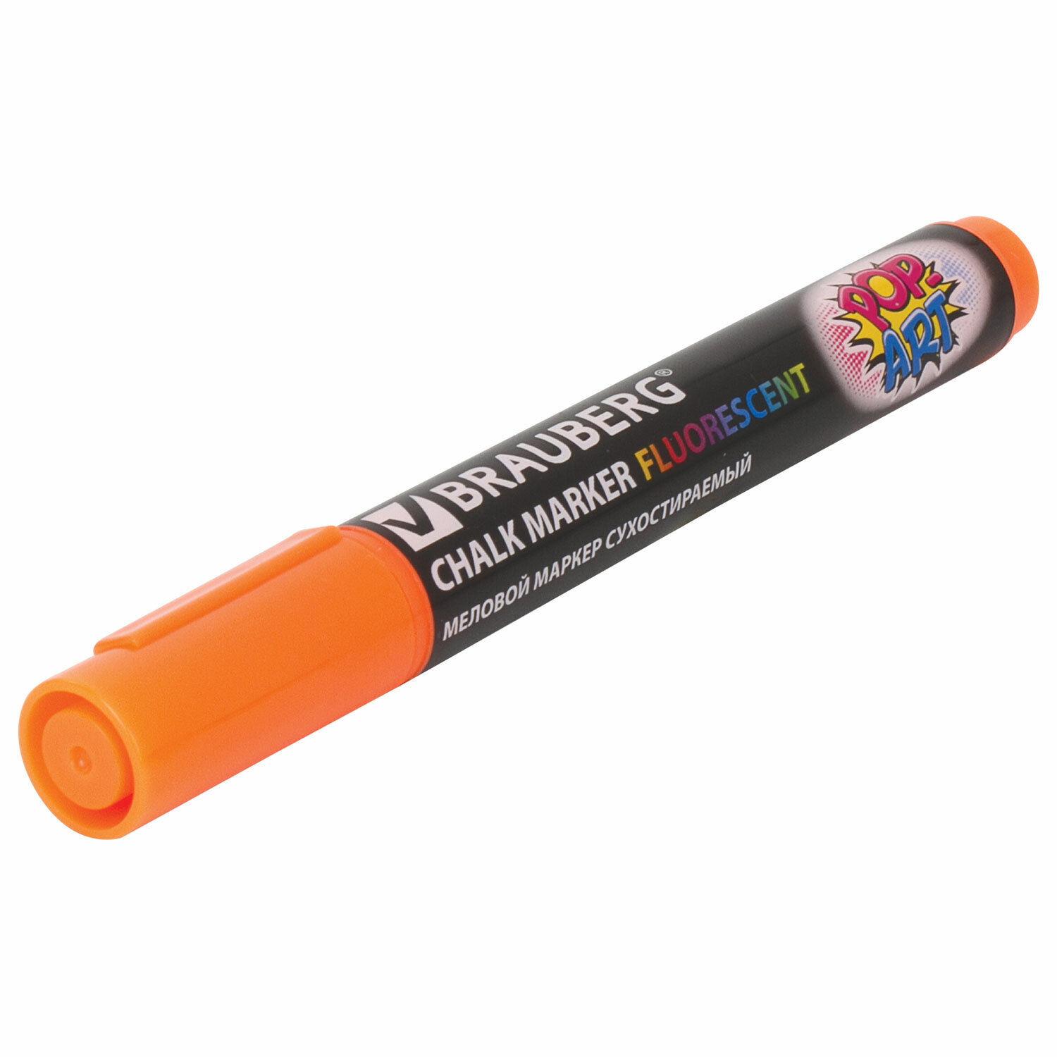 Маркер меловой "POP-ART" ОРАНЖЕВЫЙ, 5 мм, стираемый, для гладких поверхностей, BRAUBERG, 151531