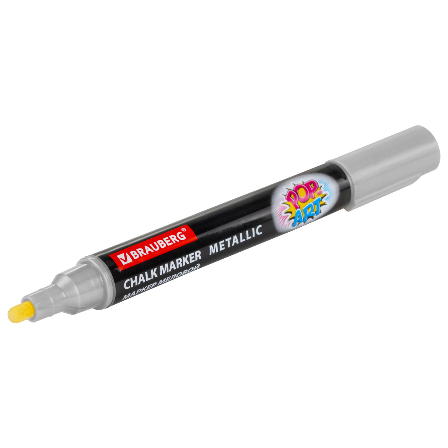 - Маркер меловой "POP-ART" СЕРЕБРЯНЫЙ, 5 мм, ВЛАГОСТИРАЕМЫЙ, для гладких поверхностей, BRAUBERG, 152486