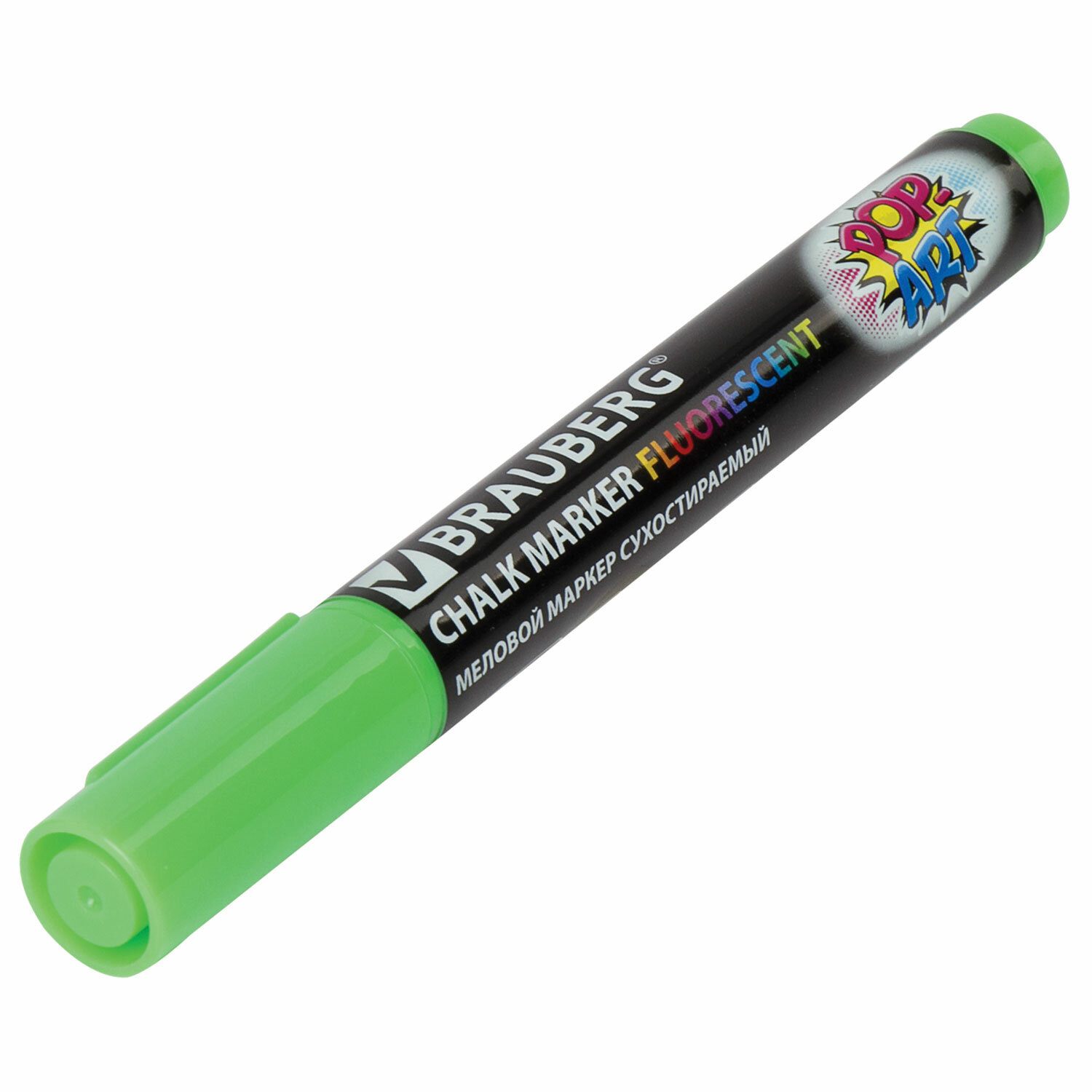 Маркер меловой "POP-ART" ЗЕЛЕНЫЙ, 5 мм, стираемый, для гладких поверхностей, BRAUBERG, 151532