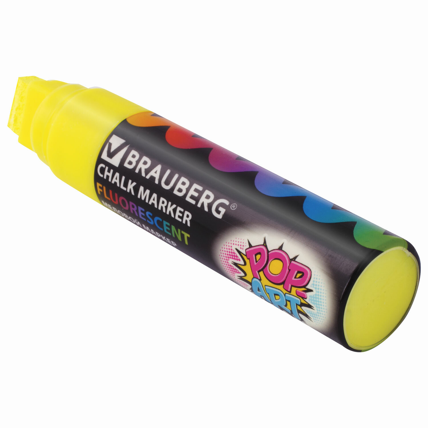 - Маркер меловой "POP-ART" ЖЕЛТЫЙ, 15 мм, стираемый, для гладких поверхностей, BRAUBERG, 151538
