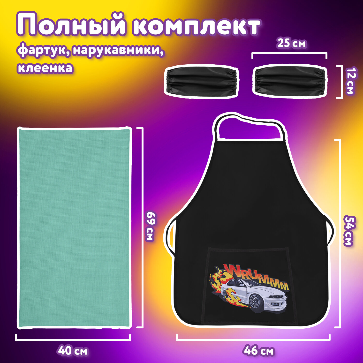 Набор для уроков труда ЮНЛАНДИЯ, клеенка ПВХ, накидка фартук с нарукавниками, "Wrum", 272366