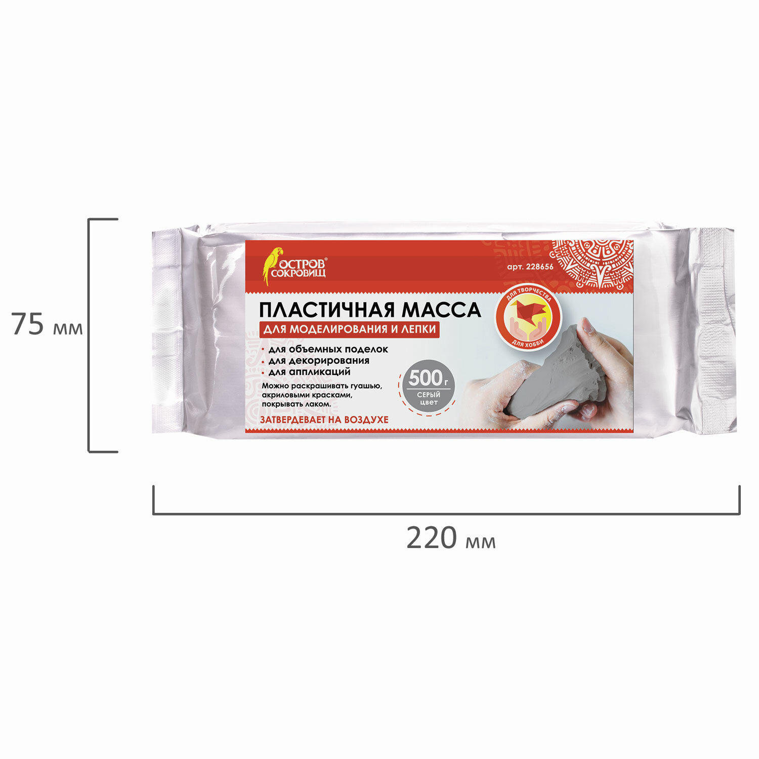 - Паста (масса) для моделирования и лепки ОСТРОВ СОКРОВИЩ, самозатвердевающая, 500 г, серая, 228656