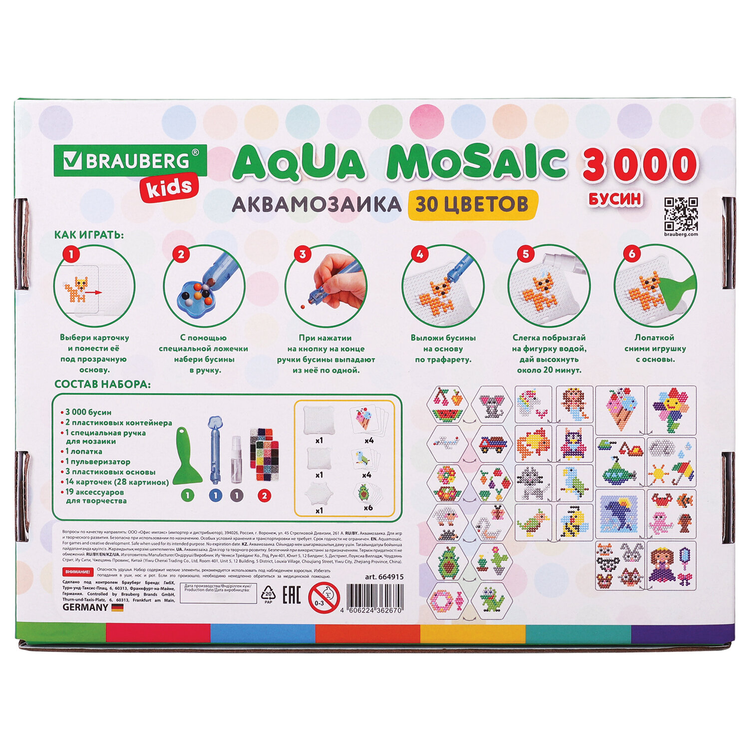 - Аквамозаика 30 цветов 3000 бусин, с трафаретами, инструментами и аксессуарами, BRAUBERG KIDS, 664915