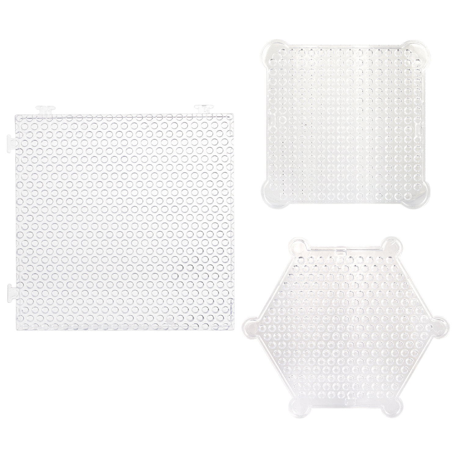 В набор входят бусины 30 различных цветов, около 100 штук каждого цвета, 2 пластиковых контейнера с отсеками для удобного хранения бусин, 3 подставки-трафарета, 14 двусторонних карточек с картинками, бутылочка-пульверизатор для воды, специальная ручка для аквамозаики, лопатка для снятия готовой фигурки с трафарета, а также основы для браслета и других украшений, колечки и крепления для создания брелков, подвесок и других игрушек из бусин.