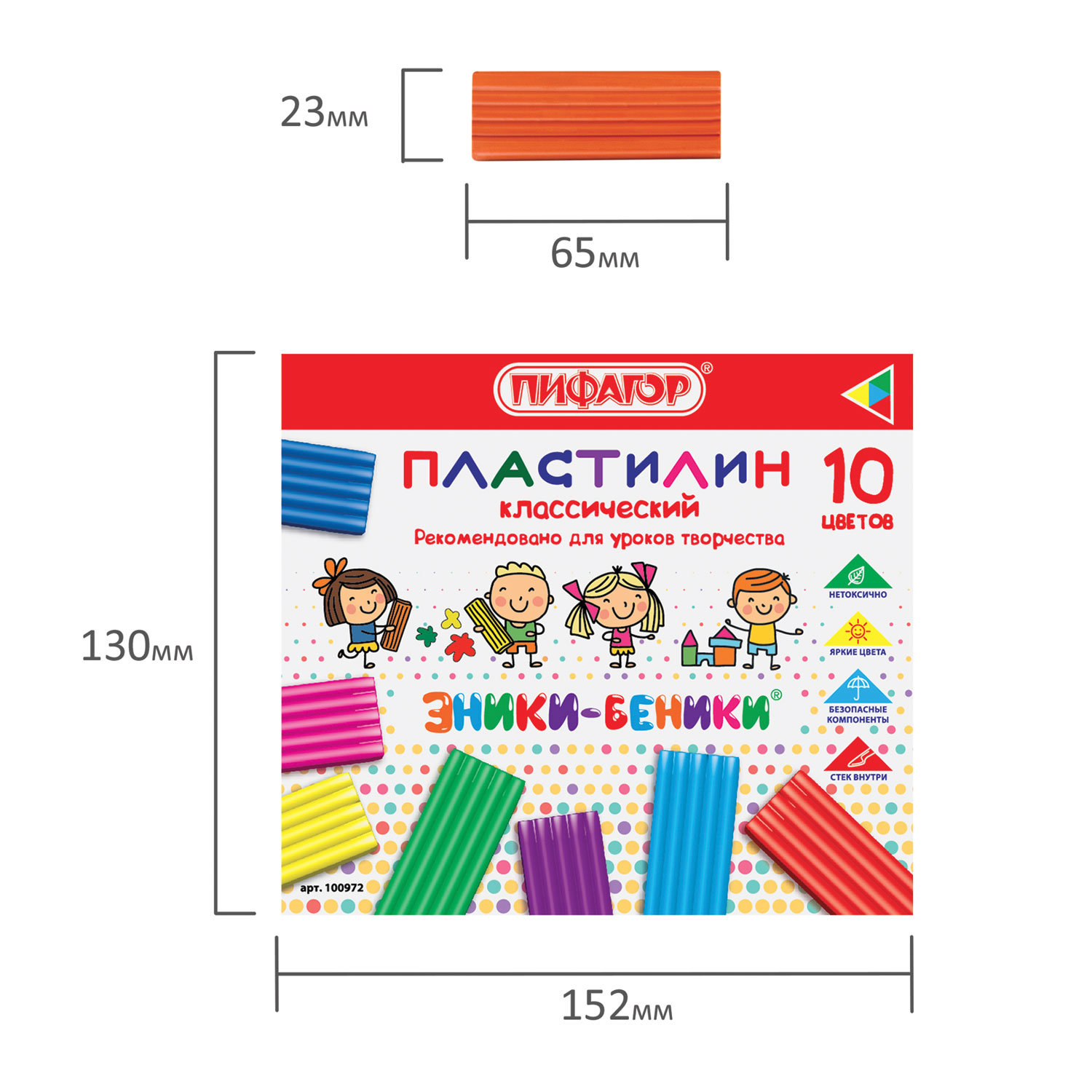 - Пластилин классический ПИФАГОР "ЭНИКИ-БЕНИКИ", 10 цветов, 200 г, со стеком, картонная упаковка, 100972