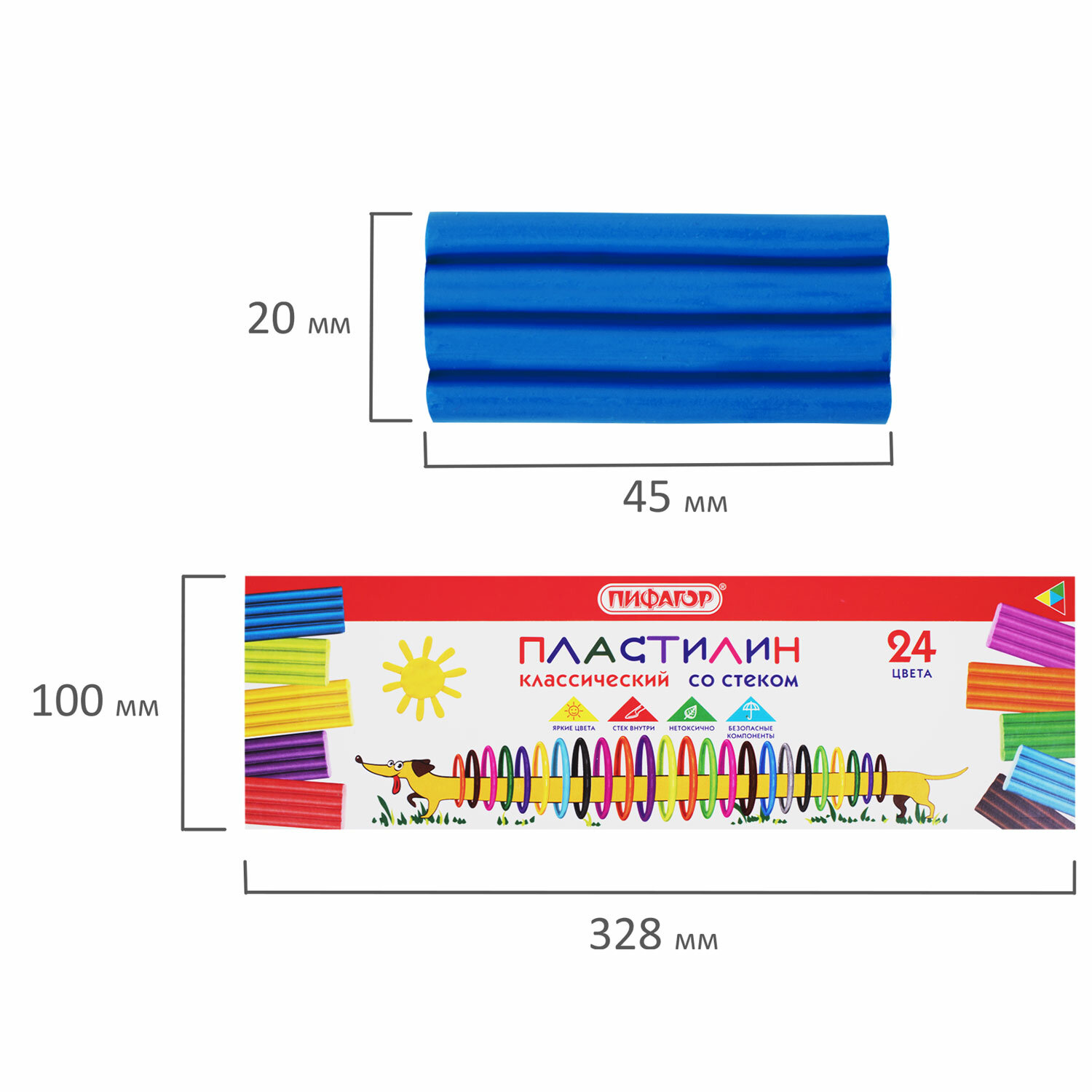 - Пластилин классический ПИФАГОР "Веселая такса", 24 цвета, 360 г, СО СТЕКОМ, 106676