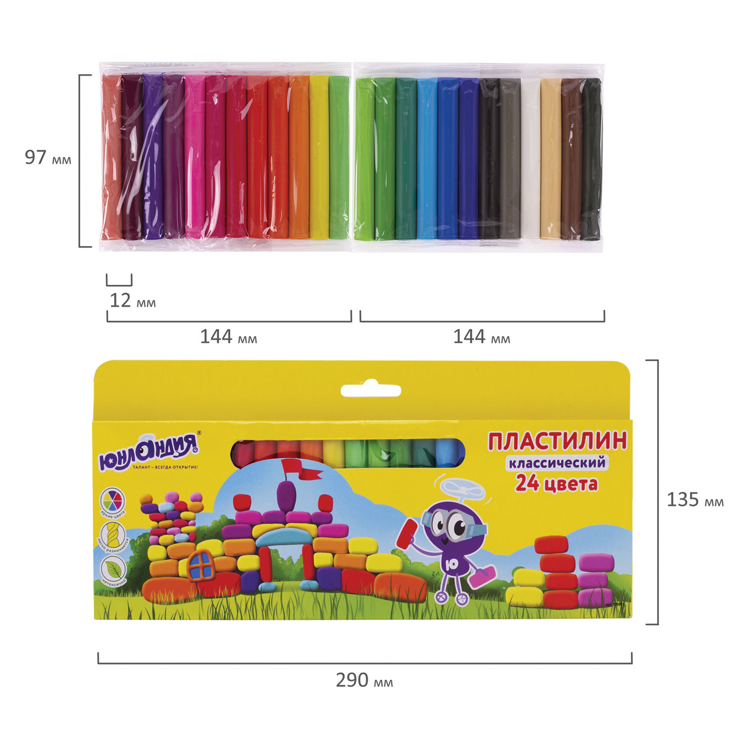 - Пластилин классический ЮНЛАНДИЯ "ЮНЛАНДИК-АРХИТЕКТОР", 24 цвета, 480 г, ВЫСШЕЕ КАЧЕСТВО, 105031
