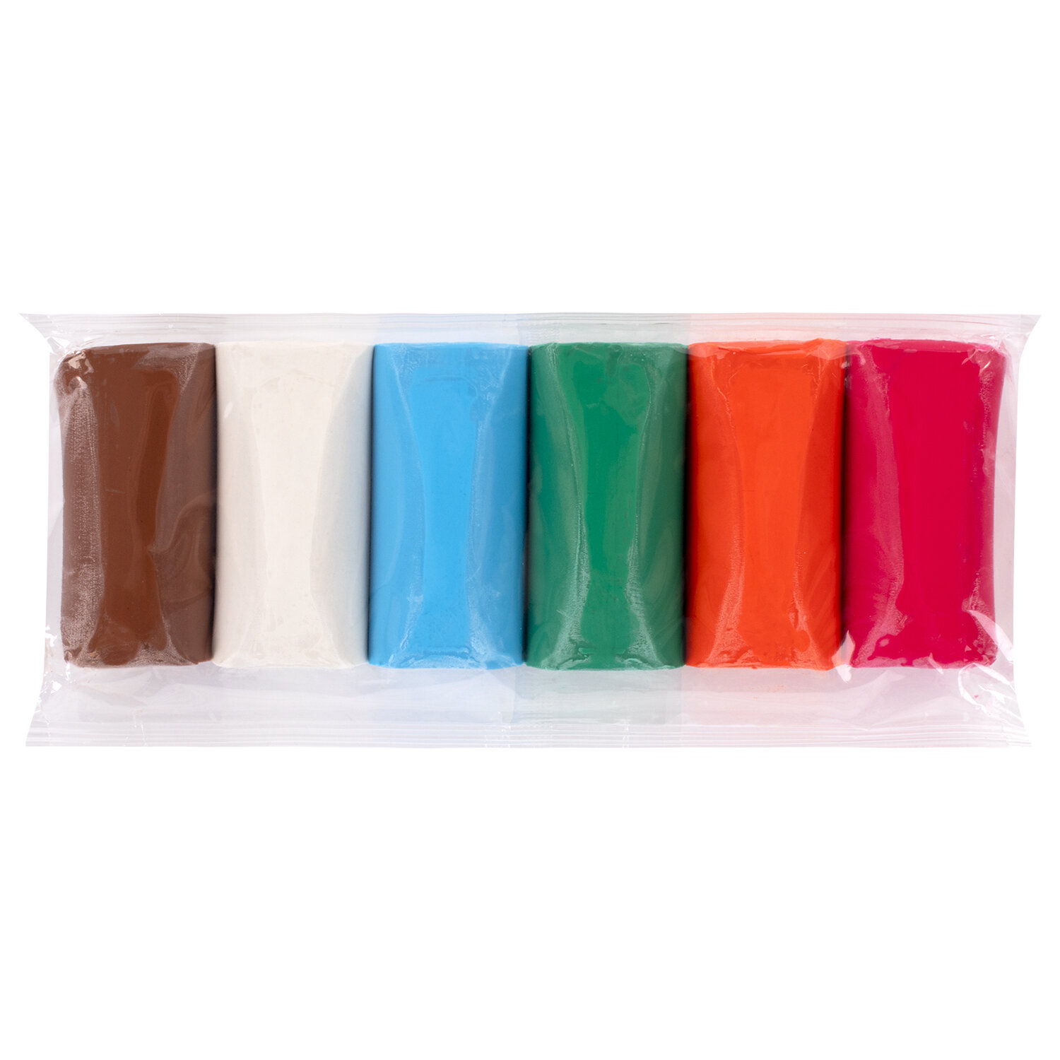 Масса набора – 800 г. В наборе 36 брусков, 5 формочек, стек, скалка.