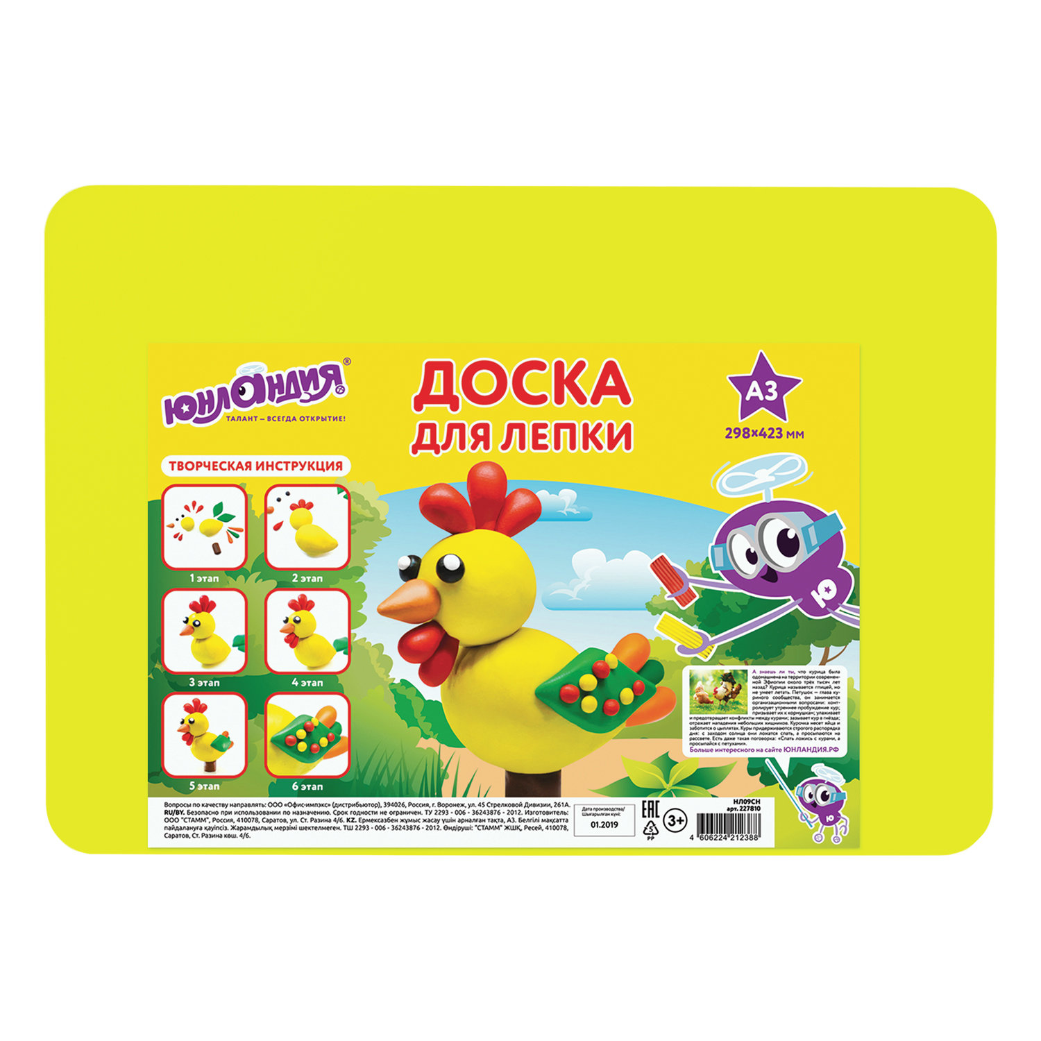 - Доска для лепки А3, 298х423 мм, ЮНЛАНДИЯ, желтая, 227810