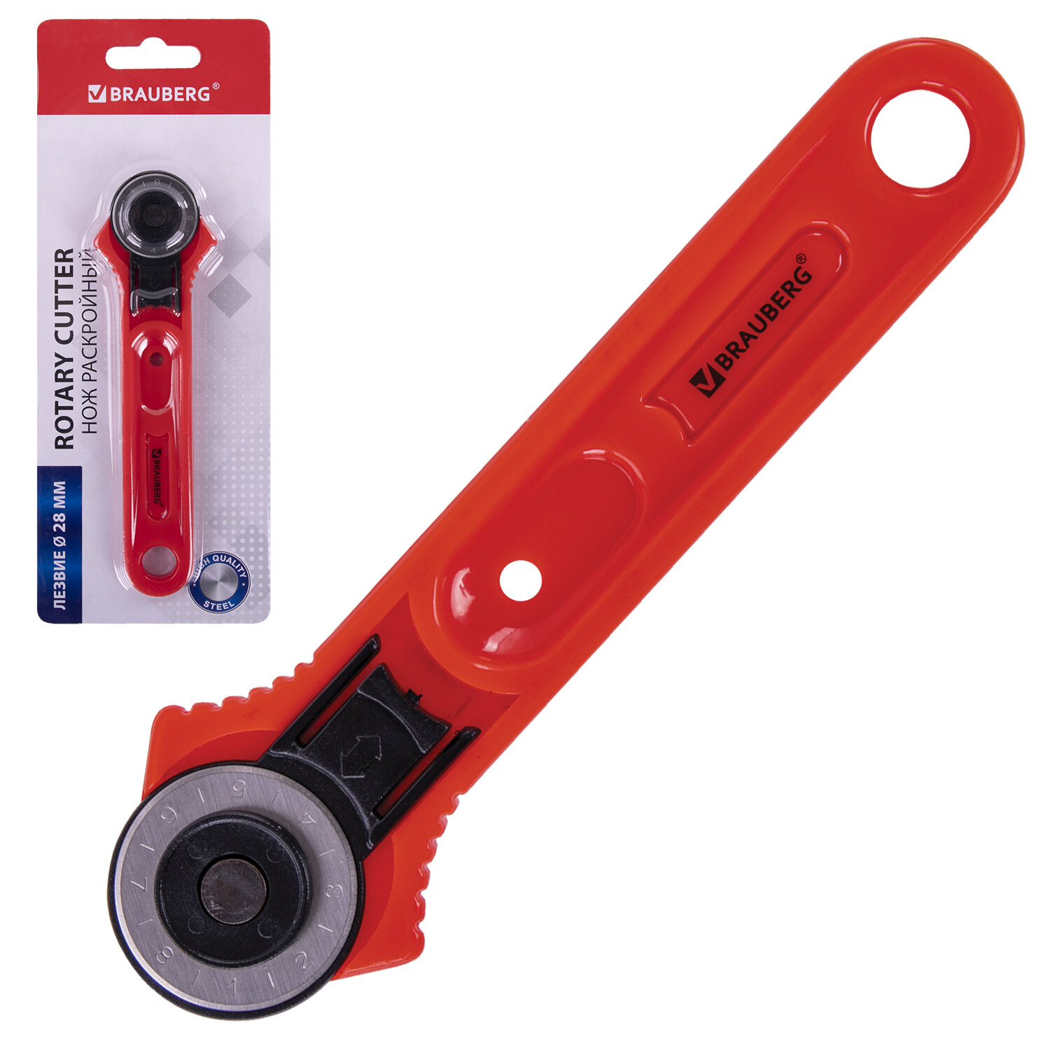 - Нож раскройный роликовый 28 мм BRAUBERG, круглое лезвие, 238090