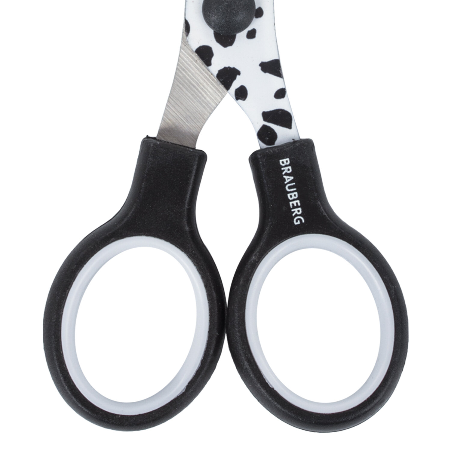 - Ножницы 130 мм с цветной печатью "Далматин", чёрно-белые, закругленные, BRAUBERG KIDS, 232276