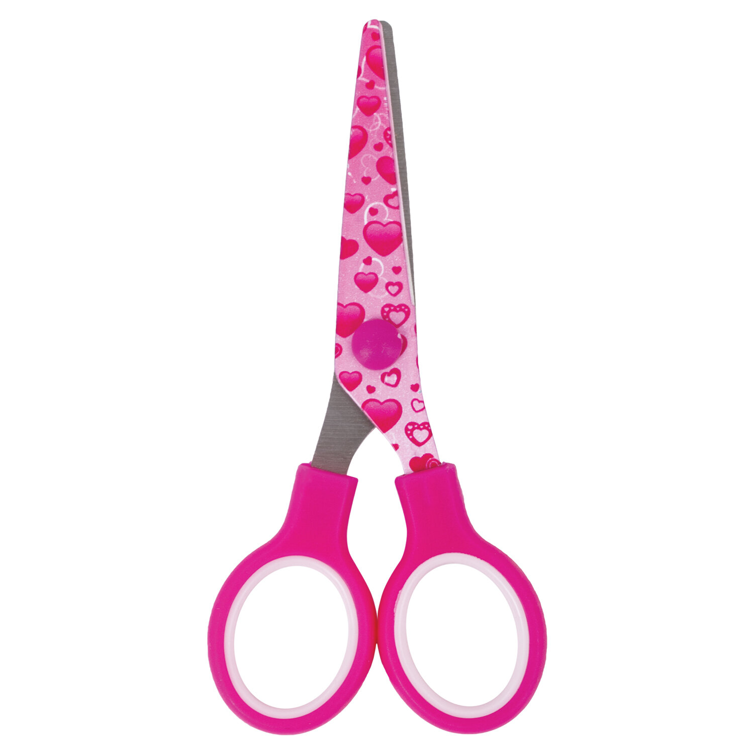 - Ножницы 130 мм с цветной печатью "Сердечки", малиновые, закругленные, BRAUBERG KIDS, 232275