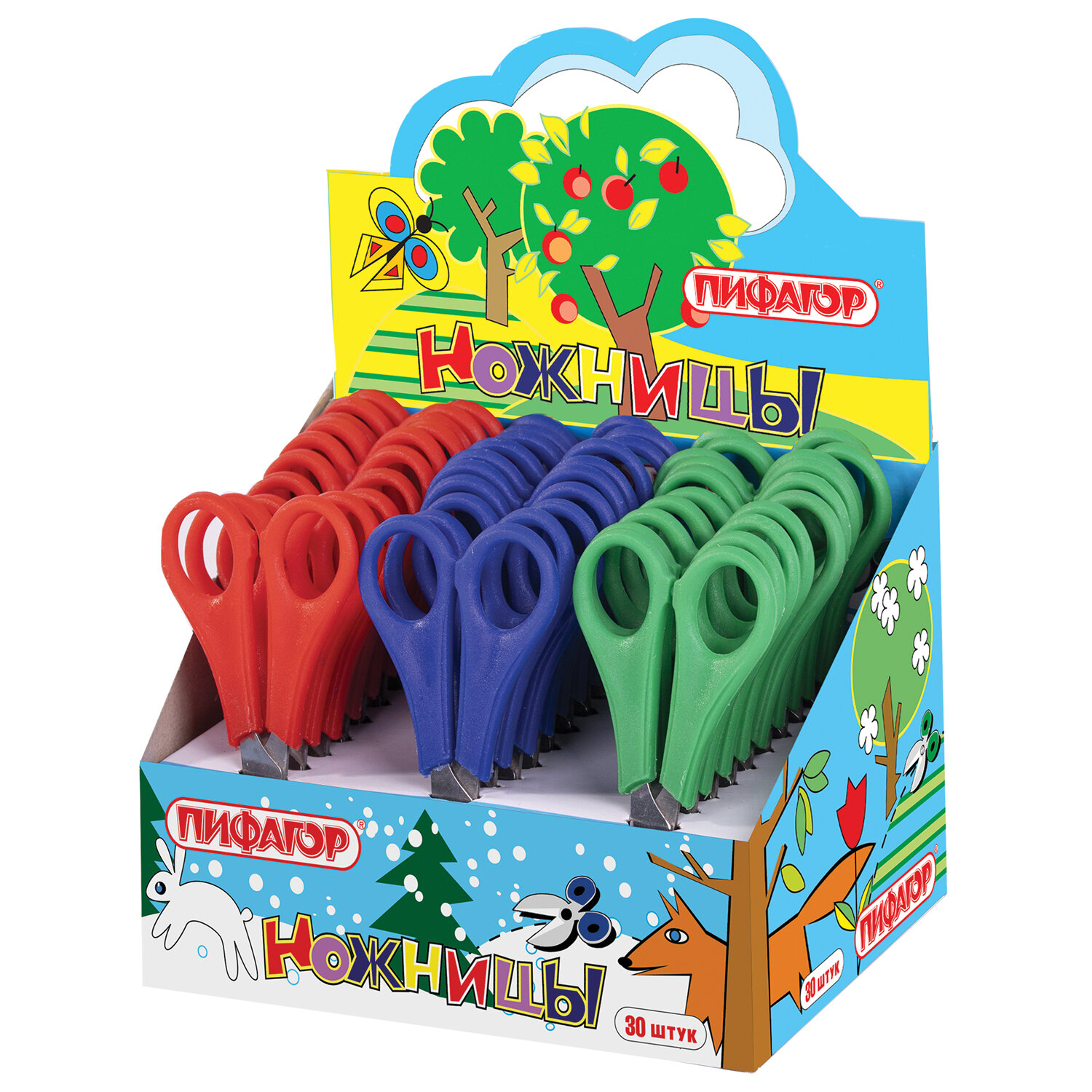 - Ножницы ПИФАГОР, 135 мм, с линейкой, ассорти, в дисплее, 230936