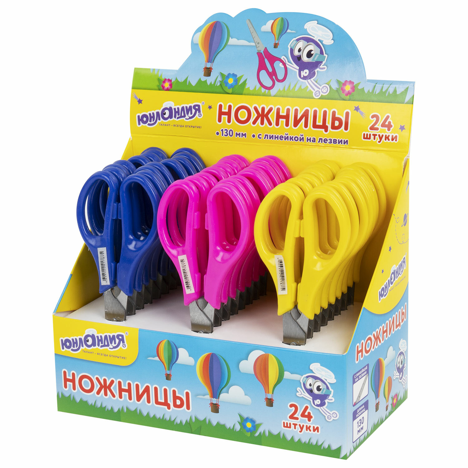 - Ножницы ЮНЛАНДИЯ 130 мм, с линейкой, цвет ассорти, в дисплее, 238342