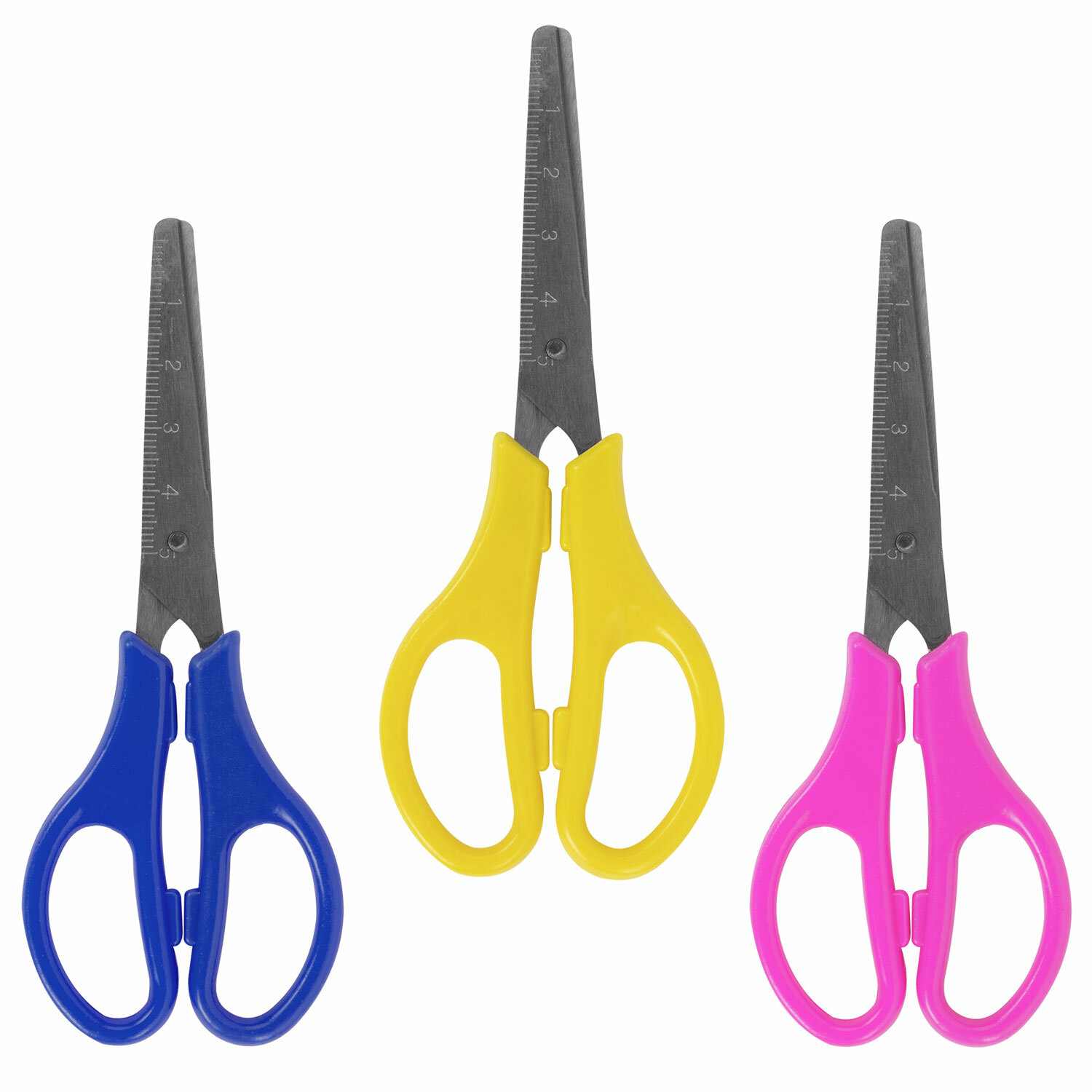 3 цвета ассорти: желтый, синий, розовый. Ножницы ЮНЛАНДИЯ 130 мм, с линейкой, цвет ассорти, в дисплее, 238342