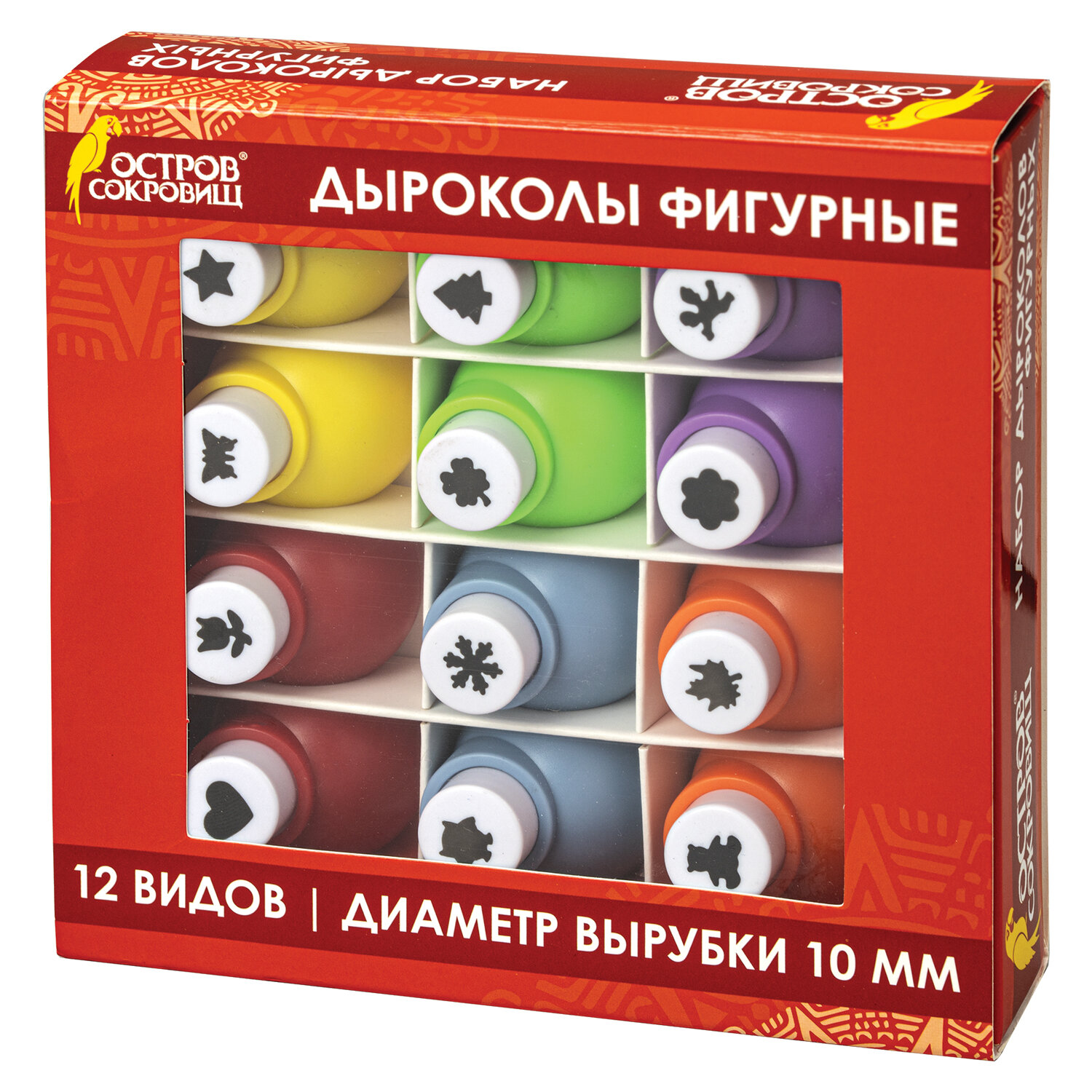 - Дыроколы фигурные, НАБОР 12 видов, диаметр вырубки 10 мм, ОСТРОВ СОКРОВИЩ, 665226