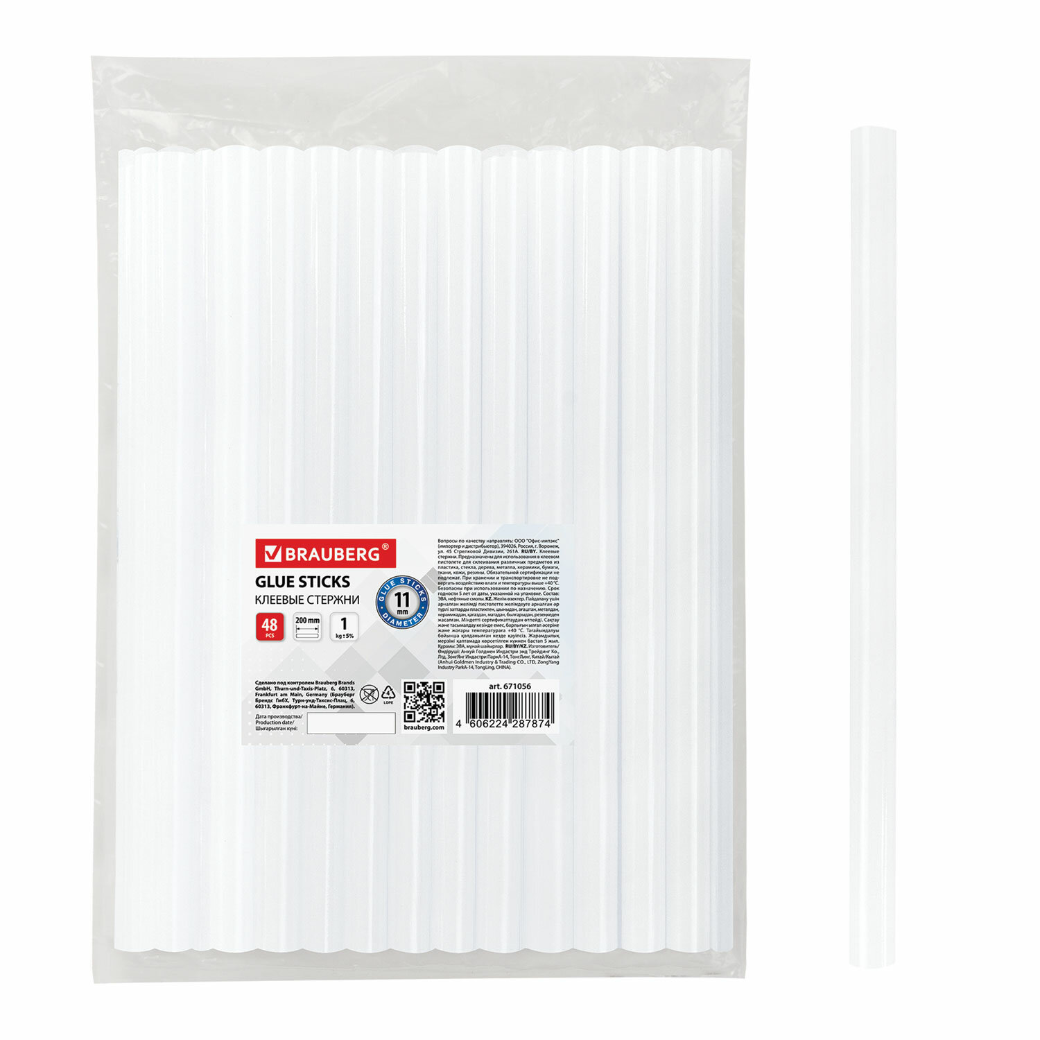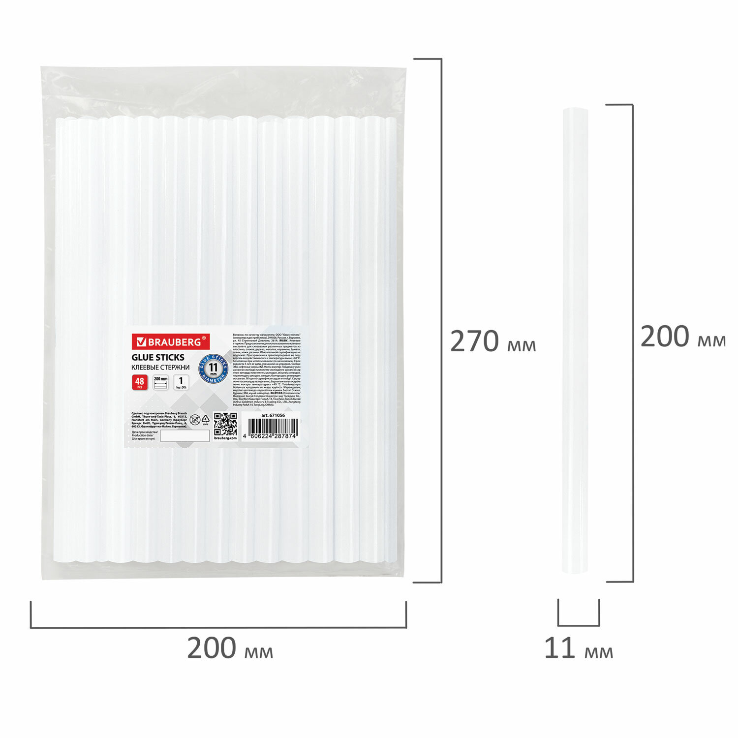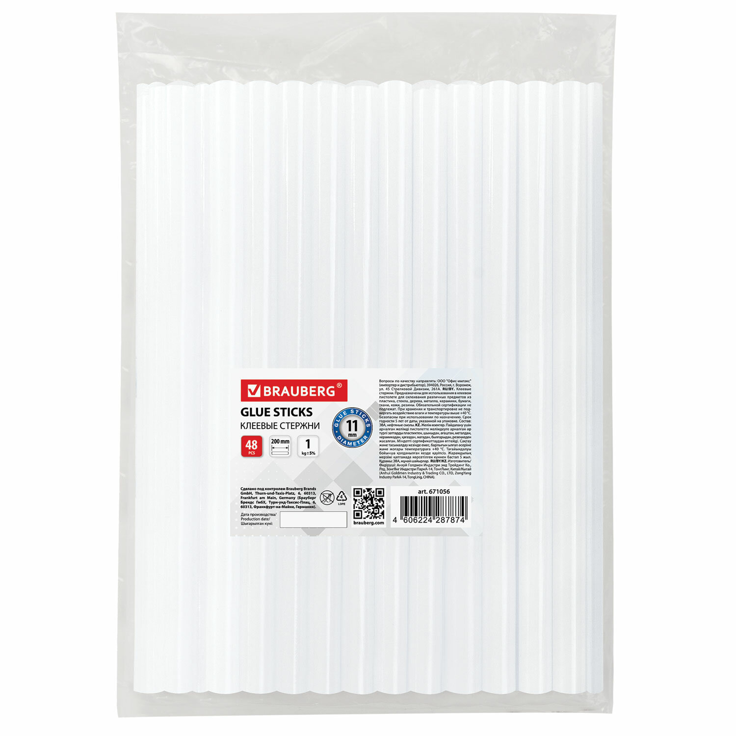 - Клеевые стержни, диаметр 11 мм, длина 200 мм, прозрачные, 1 кг (48 штук) BRAUBERG, 671056
