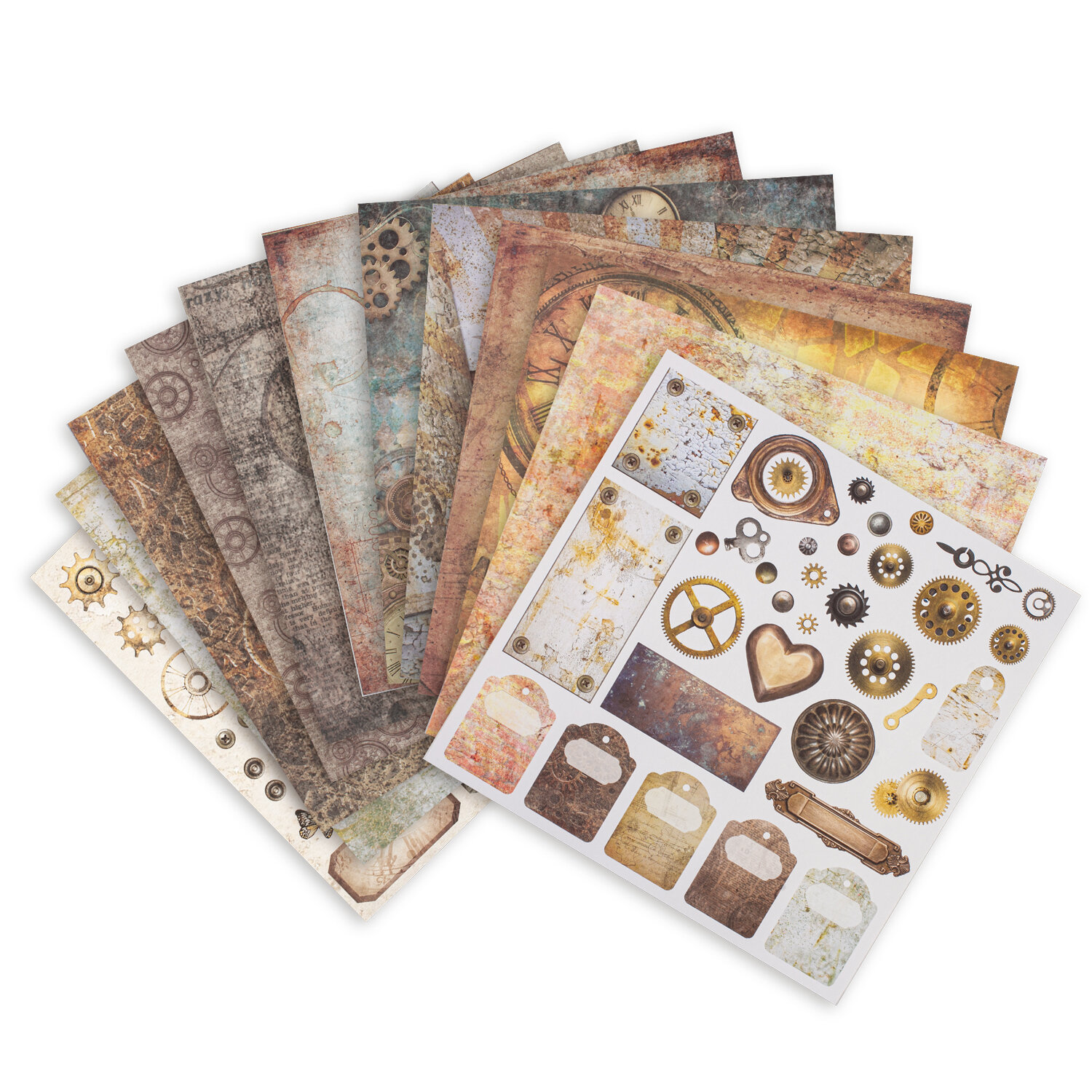 - Бумага для скрапбукинга 30х30 см "Стимпанк", двусторонняя, 12 листов, 12 дизайнов, 180 г/м2, ОСТРОВ СОКРОВИЩ, 662769