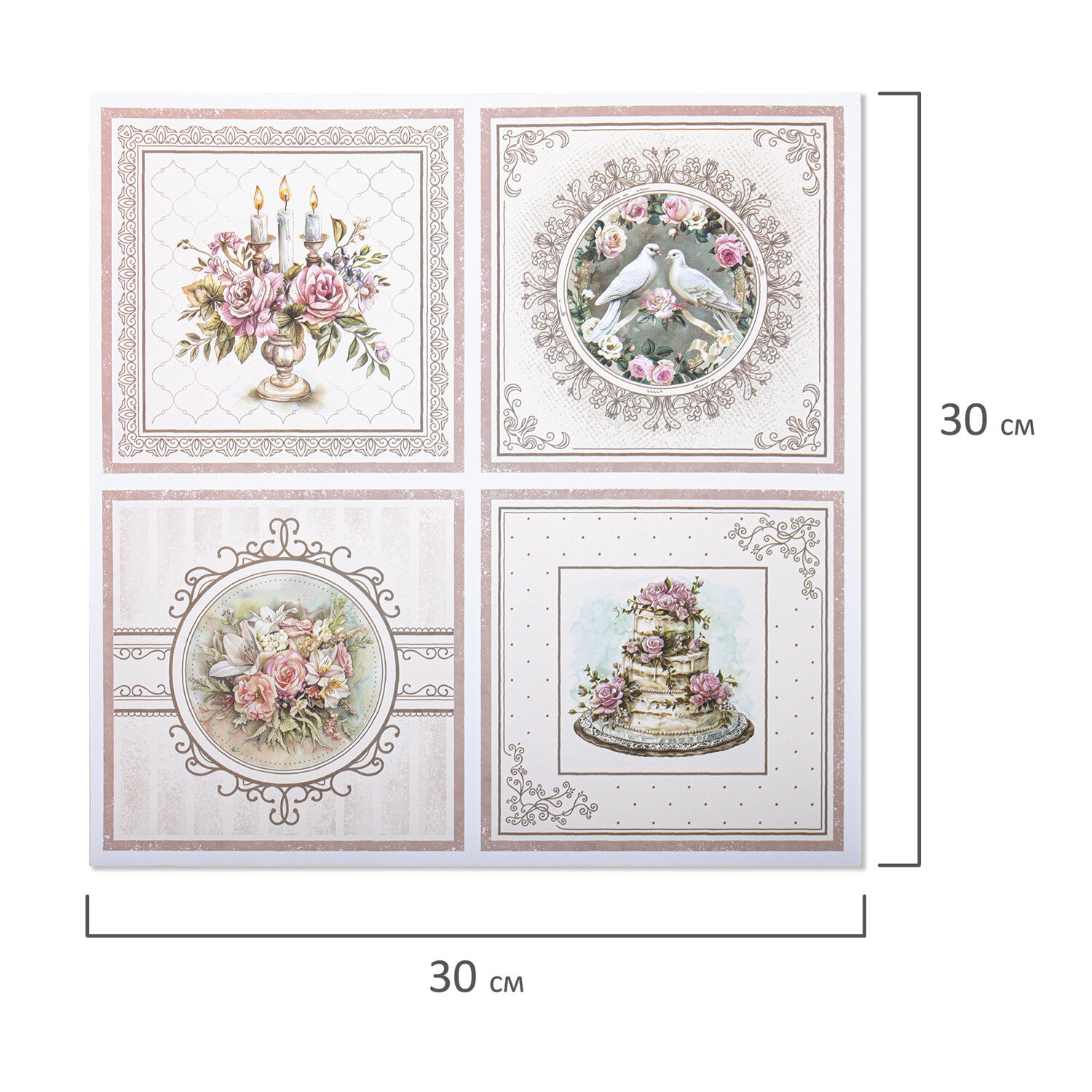 Бумага для скрапбукинга 30х30 см "Свадебный", двусторонняя, 12 листов, 180 г/м2, ОСТРОВ СОКРОВИЩ, 665435