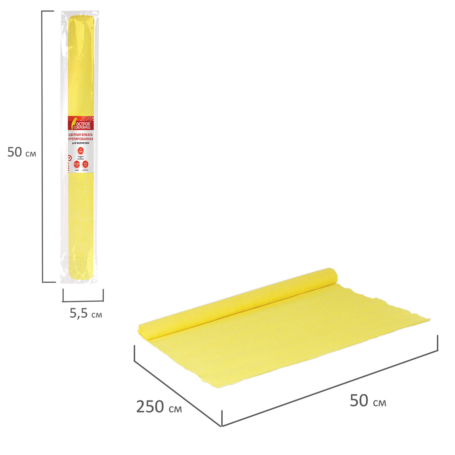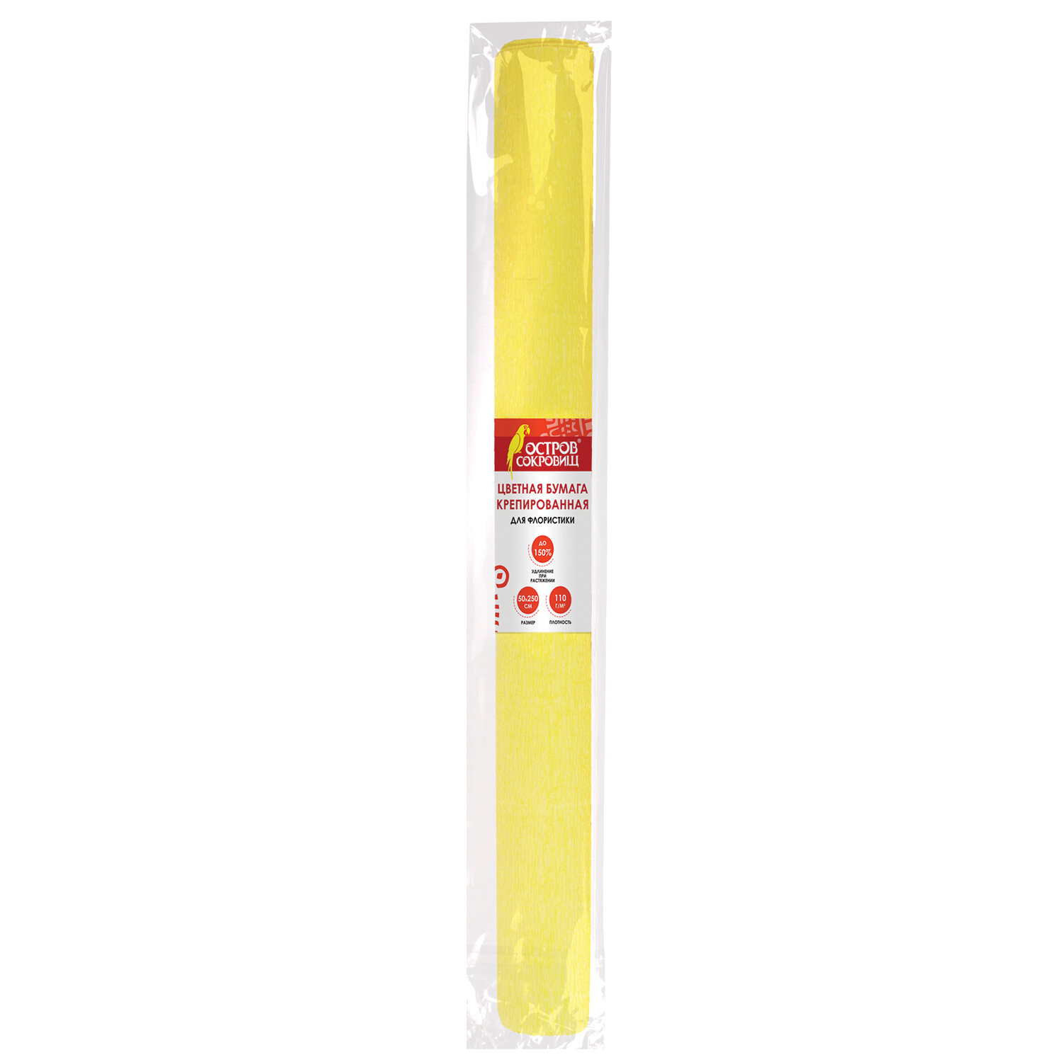 - Бумага гофрированная/креповая, 110 г/м2, 50х250 см, желтая, ОСТРОВ СОКРОВИЩ, 129146