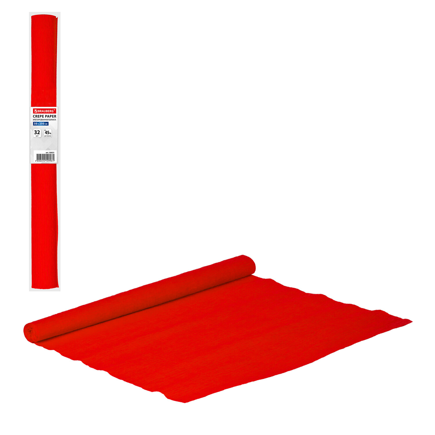 - Бумага гофрированная/креповая, 32 г/м2, 50х250 см, красная, в рулоне, BRAUBERG, 126531