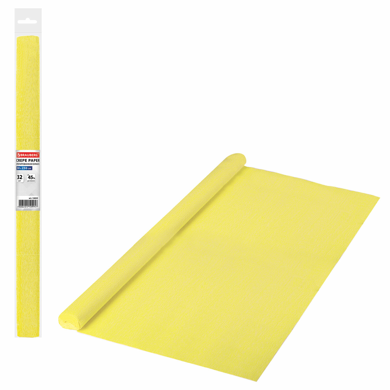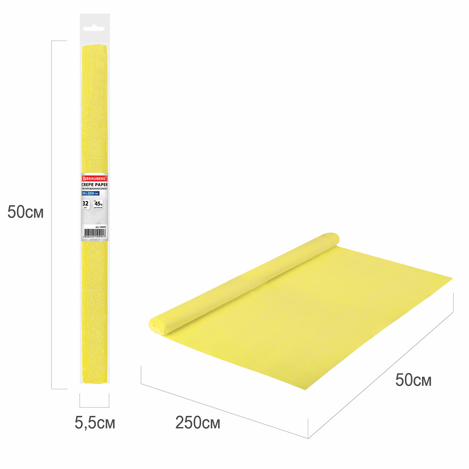 - Бумага гофрированная/креповая, 32 г/м2, 50х250 см, желтая, в рулоне, BRAUBERG, 126529