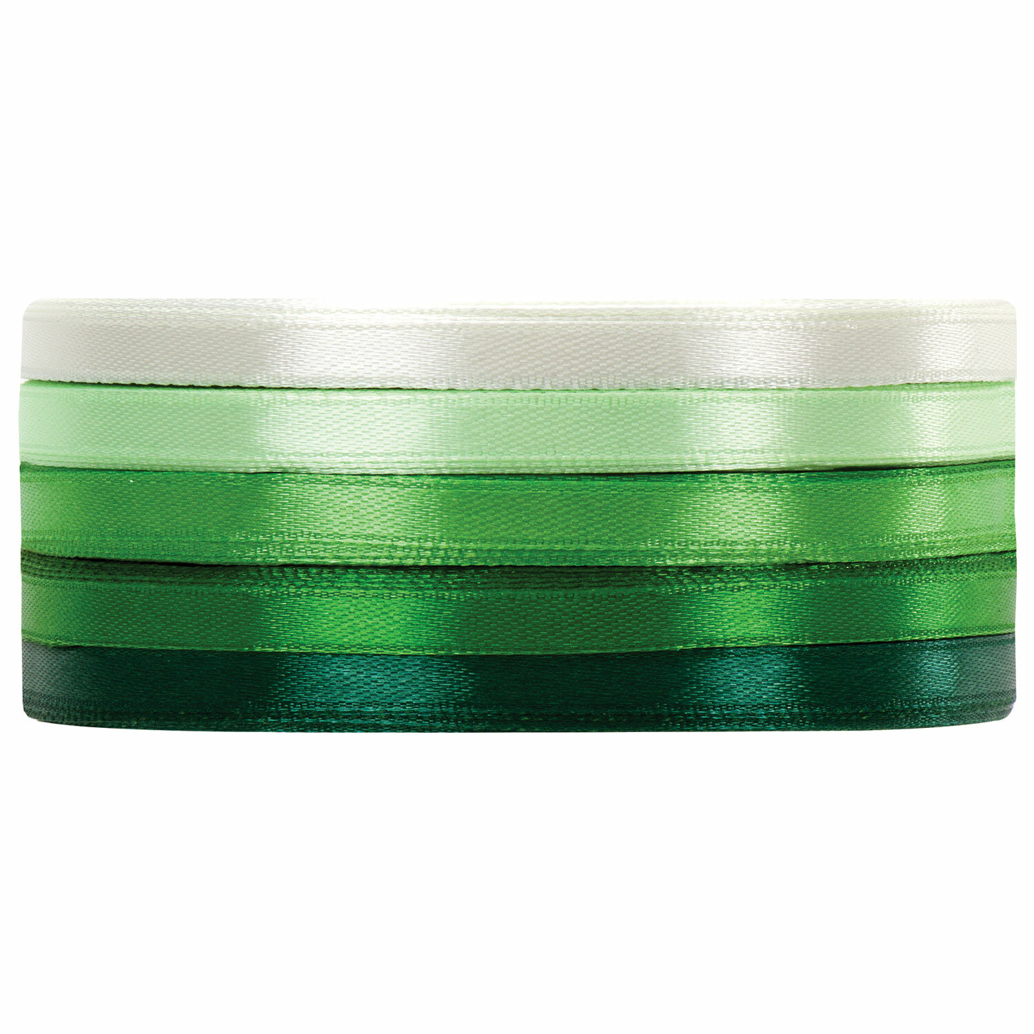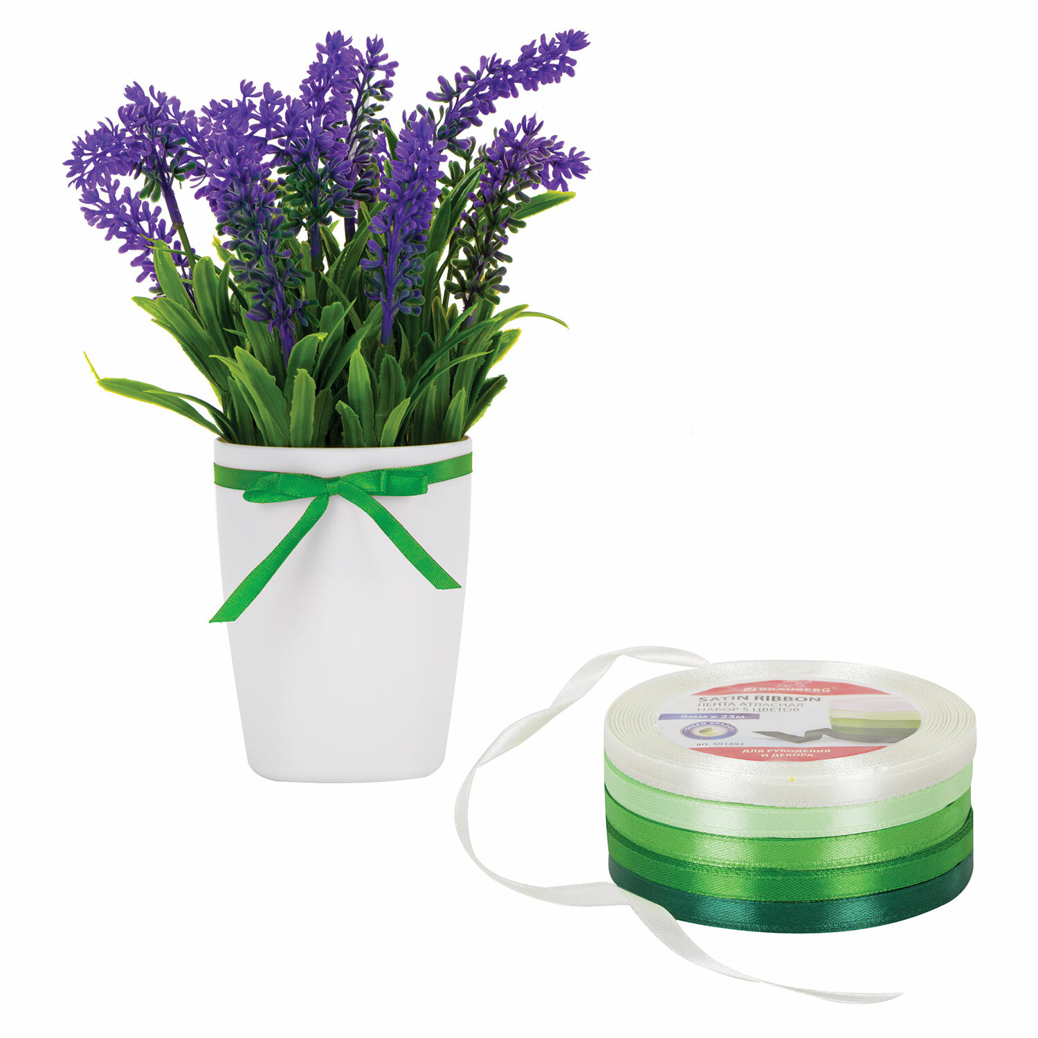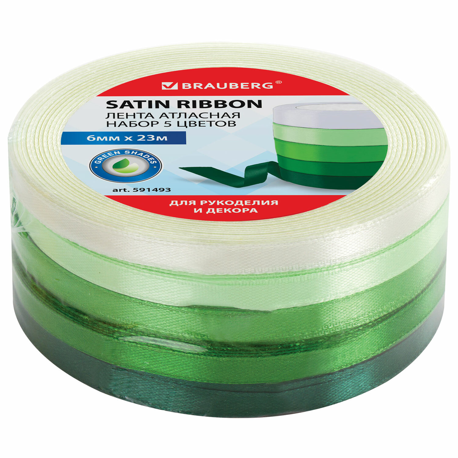 - Лента атласная ширина 6 мм, ЗЕЛЕНЫЙ СПЕКТР набор 5 цветов по 23 м, BRAUBERG, 591493
