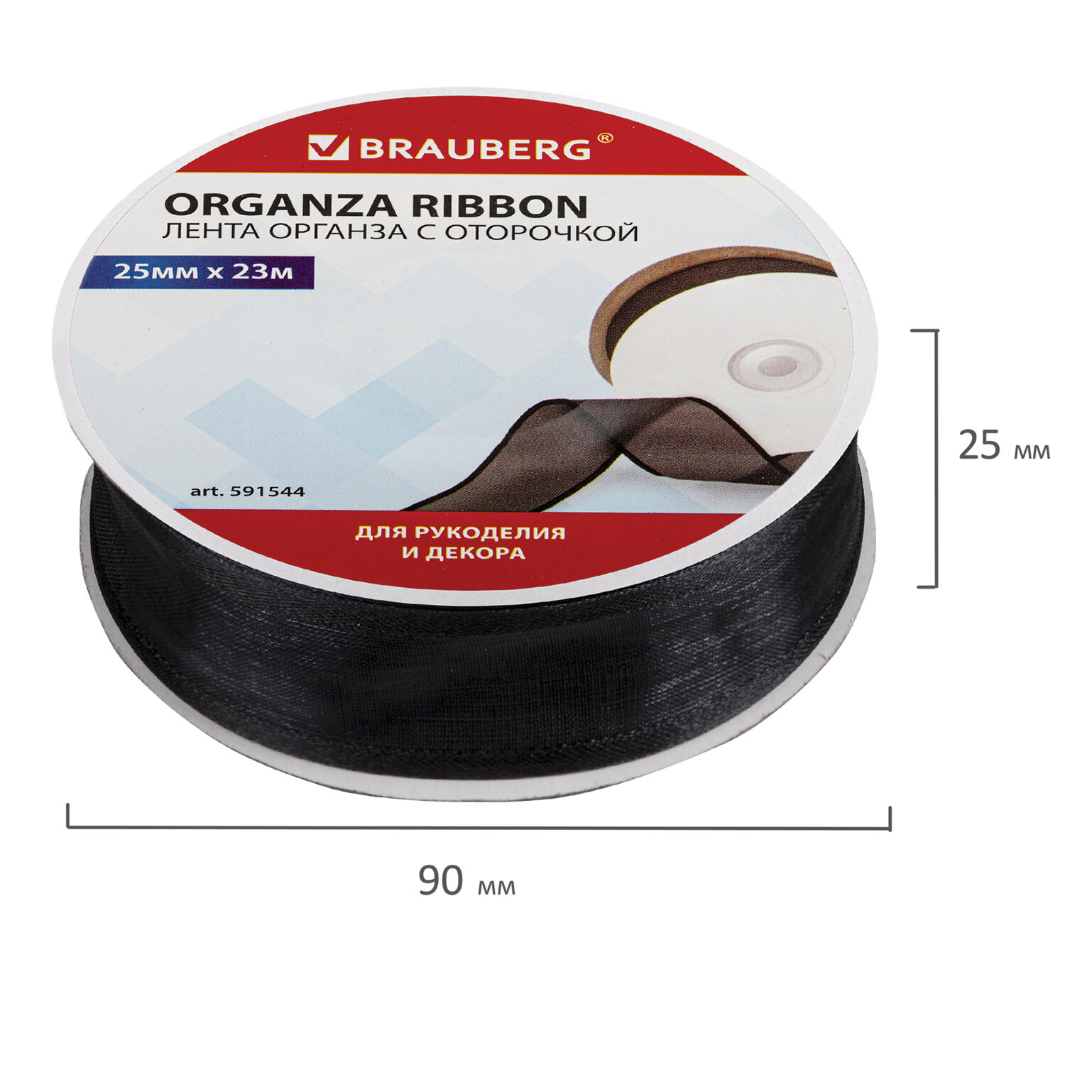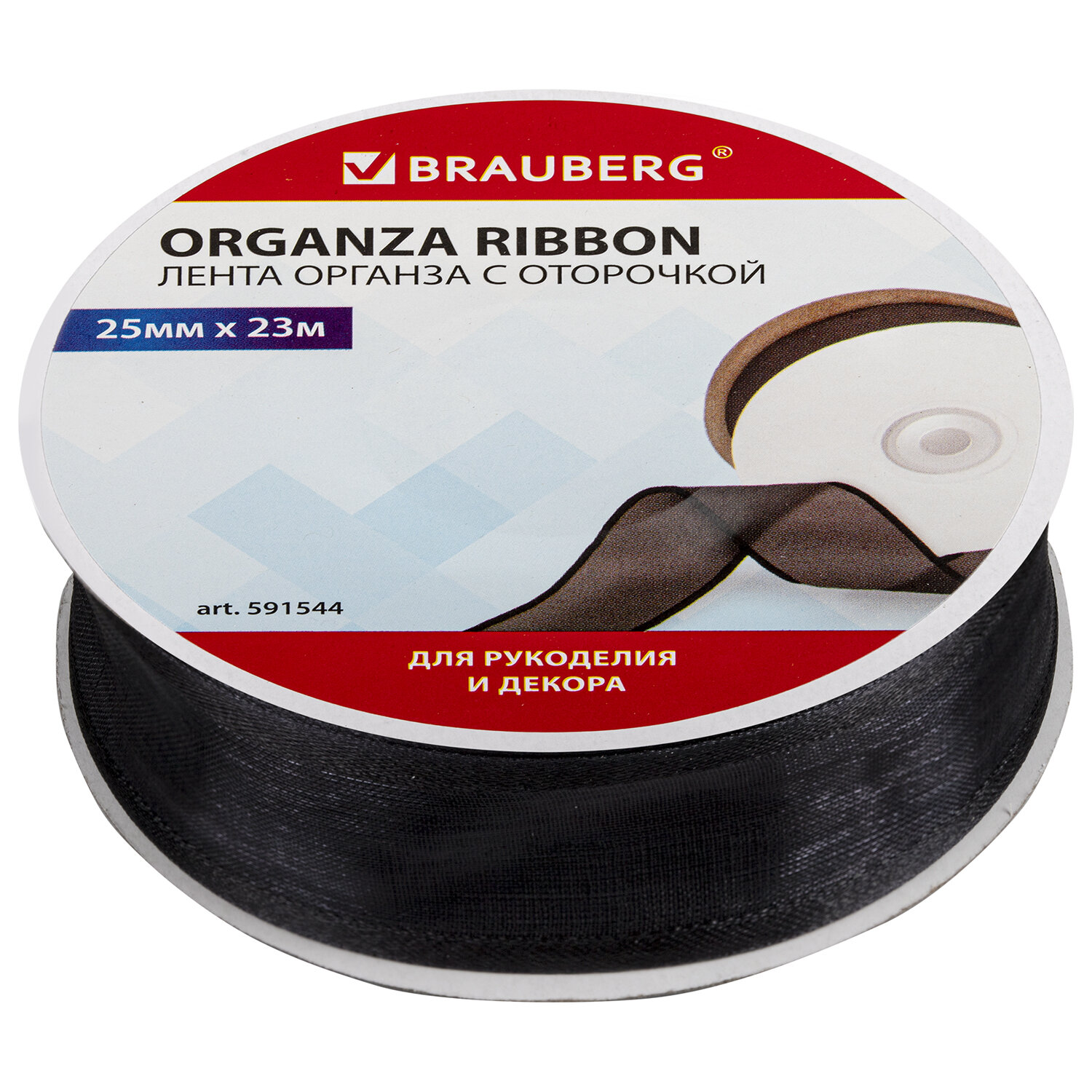 - Лента органза с оторочкой ширина 25 мм, длина 23 м, черная, BRAUBERG, 591544
