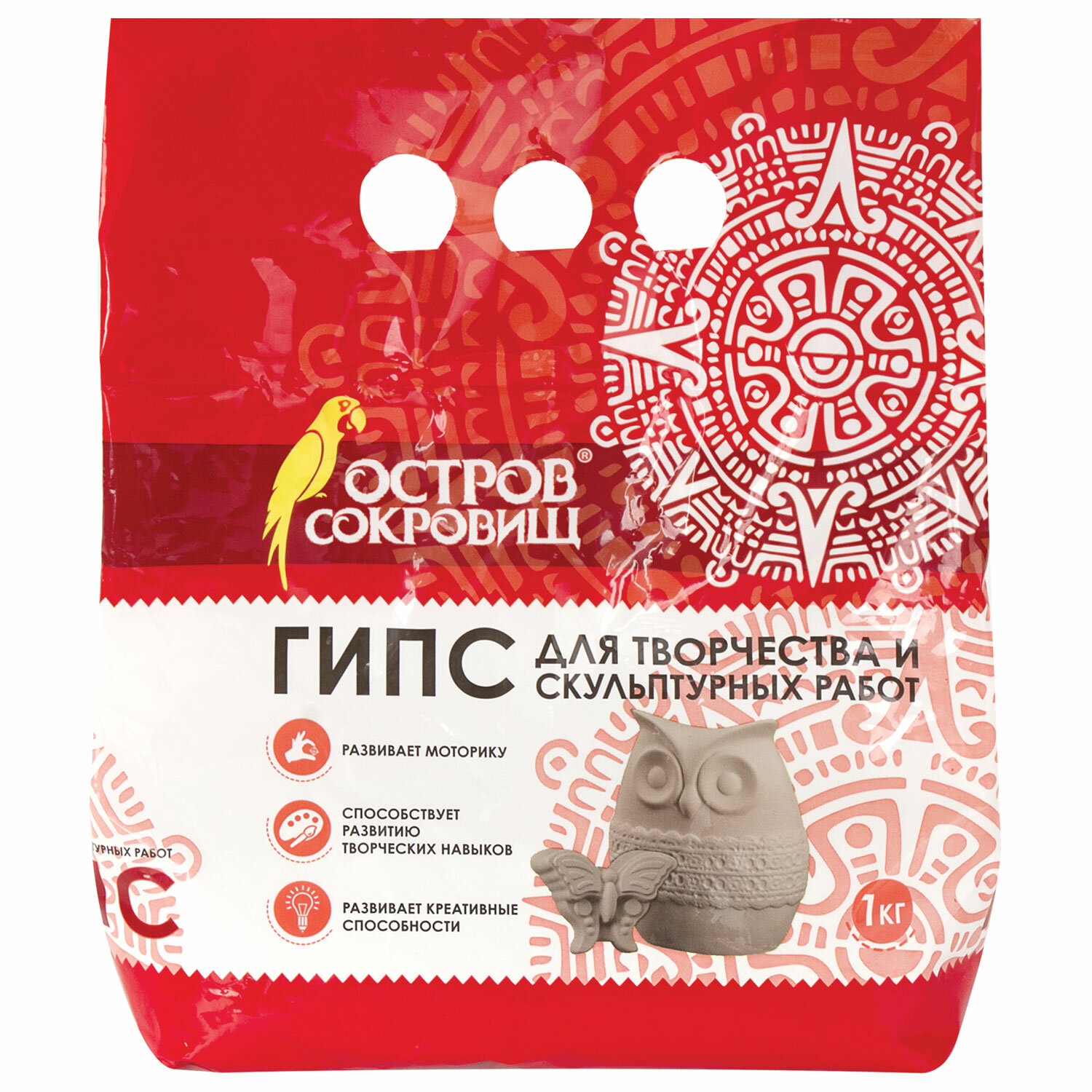 - Гипс скульптурный для творчества, 1 кг, прочность Г-16, пакет, ОСТРОВ СОКРОВИЩ, 661546