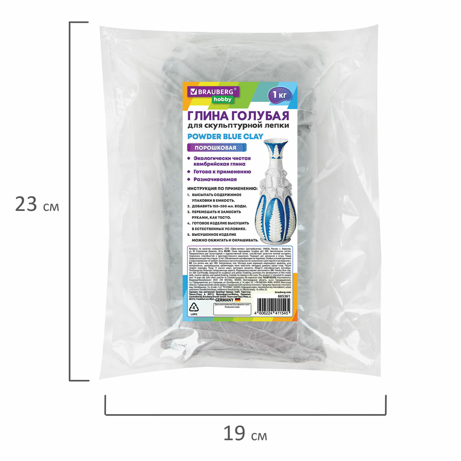 Глина выполнена в голубом цвете, являющемся наиболее востребованным. Вес - 1 кг. Глина для лепки голубая, 1 кг, порошковая, готовая, размачиваемая, BRAUBERG HOBBY, 665361