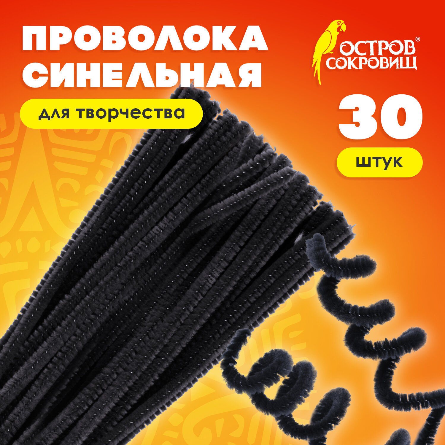 - Проволока синельная для творчества "Пушистая", черная, 30 шт., 0,6х30 см, ОСТРОВ СОКРОВИЩ, 661534