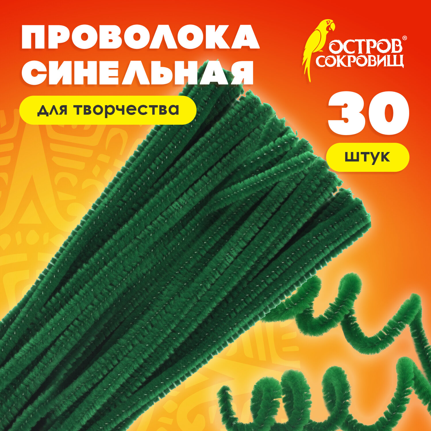 - Проволока синельная для творчества "Пушистая", зеленая, 30 шт., 0,6х30 см, ОСТРОВ СОКРОВИЩ, 661535